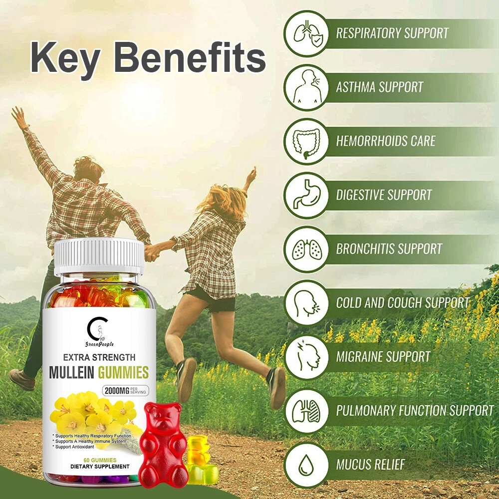 3X Mullein Leaf Gummies 2000mg Support Respiratory System Health Lung Cleansing
