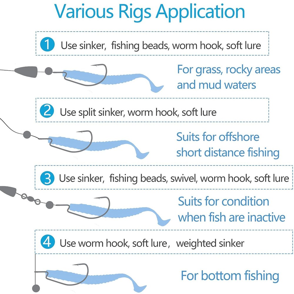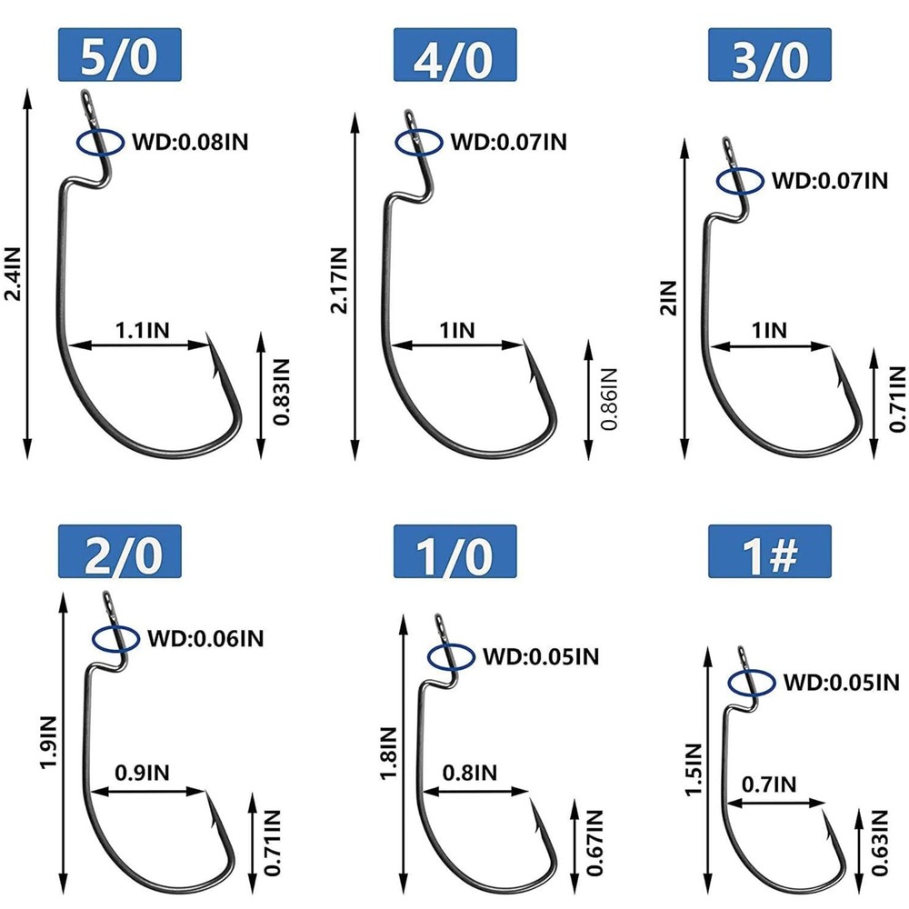 Type: Fishing Worm Hooks Features: High carbon steel construction for strength and durability. The barb was designed to lock fish retreat and let the fish have nowhere to go. High quality angler gear for all types of fishers, which helps you to catch more bigger fishes. Enjoy Your Shopping with Our Fishing Hooks! ✅【MATERIAL】Our worm hooks are made from the quality 3X-strong high carbon steel. Black Chrome finish can effectively prevent corrosion. Trusted for reliability, durability, and strength ✅【SHARP】Worm Hooks are with chemically sharpened needle points, strong and durable. With special barb hooks design, allows deeper penetration and less mortality rate.The barb was designed to lock fish retreat and let the fish have nowhere to go ✅【WIDE GAP】Bass Wide gap hooks offers more consistent hookups, better rigging with worms and other plastic rubber soft baits in saltwater and freshwater ✅【APPLICATION】Offset point and bait keeper barb works to hold a variety of soft plastic baits in place, Fit for various plastic bait applications. Great for chunking, jigging, trolling, or casting ✅【PACKAGE】50/150pcs available in Size #1, 1/0, 2/0, 3/0, 4/0 and 5/0. A great choice for the freshwater and saltwater anglers
