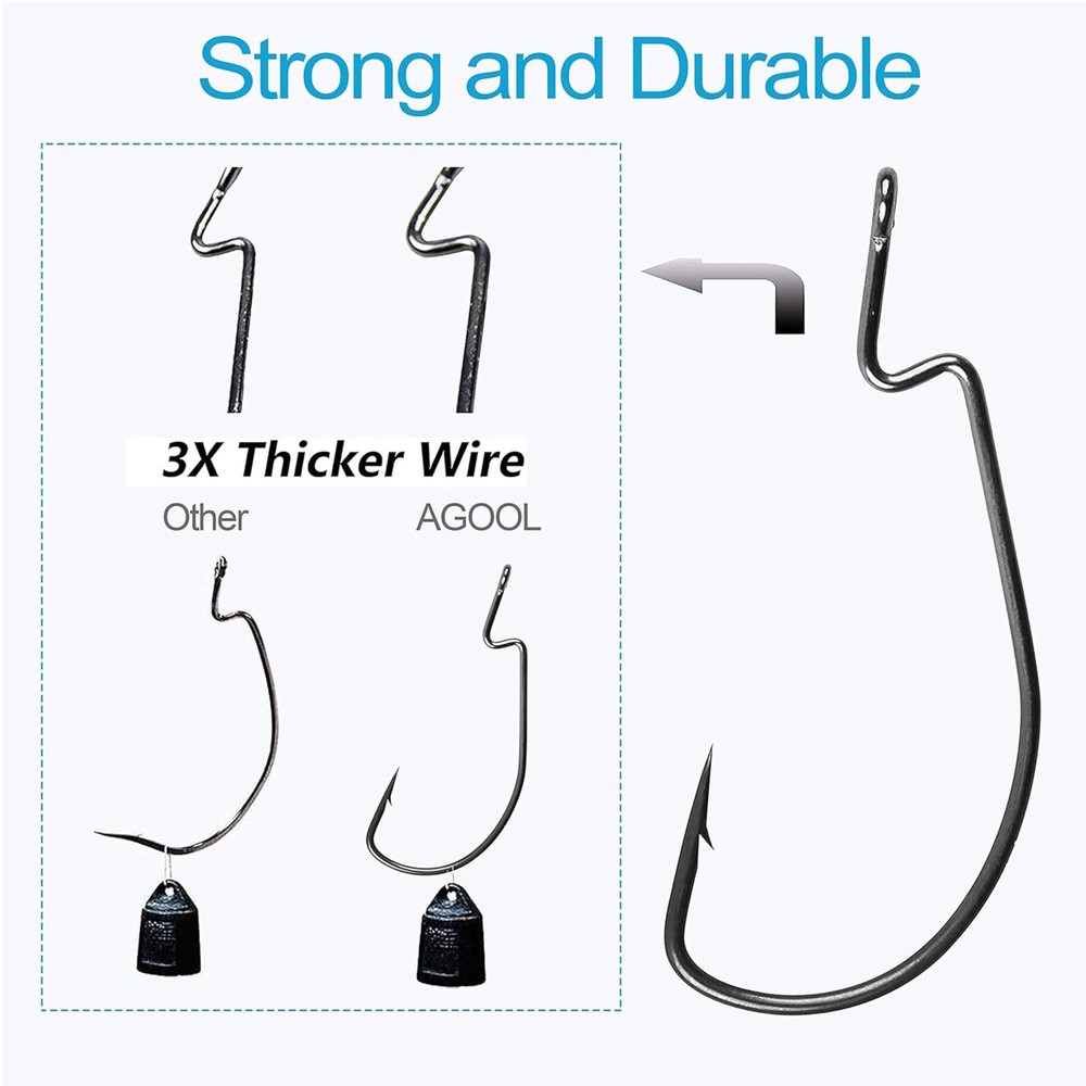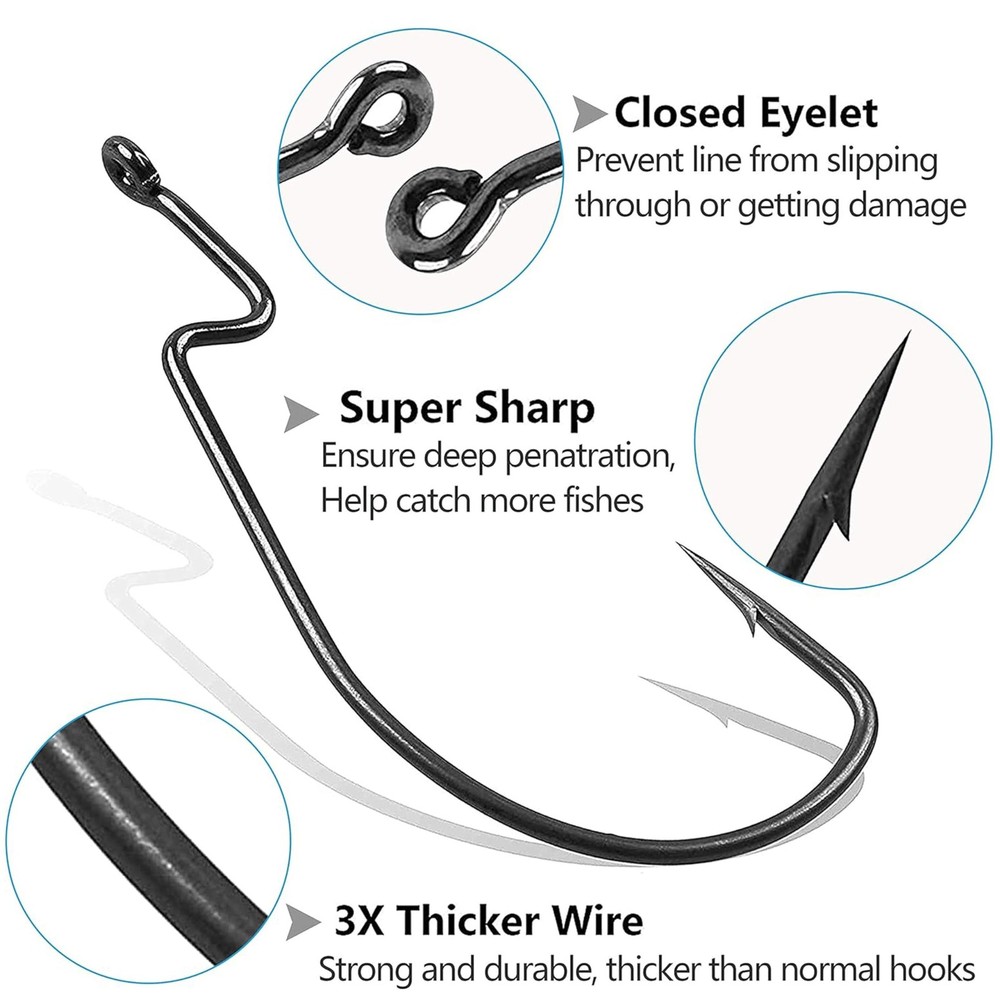 3X Strong EWG Bass Worm Hooks for Texas Rig Fishing
