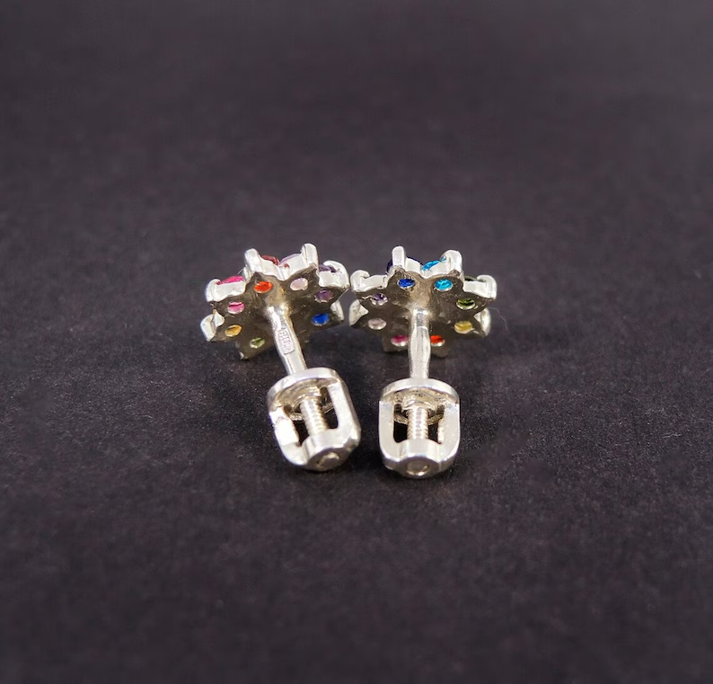 Blule Star_Manufacturer We Offer Customization Want to add a personal touch to this piece? Contact us and we will create one just for you. Customization We Offer : These vintage-inspired stud earrings feature a 3 Ct round simulated multi-gemstone flower design crafted in white sterling silver. The main stones are 4 mm in width and boast a multicolor hue with excellent cut grade and eye-clean clarity. The earrings have a screw back closure and are handmade with personalized engraving options available, making them perfect for occasions like engagements, weddings, anniversaries, and birthdays. Ideal for those who appreciate beauty, art, and a touch of fantasy in their jewelry collection, these unique earrings exude elegance and charm. Please send us a message on eBay for any customization requests and we will get back to you Payment We only accept payment via Payoneer, Please sent the payment to us within 8 days after the auction has ended, or you will have unpaid case auto open by eBay. Shipping We will ship all items within 5-7 business days of purchase during the work week (M-F) excluding holidays. If you order on Friday, your order will be shipped the following business day. Tracking will be provided when it becomes available. Domestic delivery may take up to 1 week. It all depends on the local office. Once the order leaves our location, we have no control over delivery times. We will only ship to a corresponding Govt Z.P.O.Dept Verified Address. Please make sure your address is current and correct. If the information does not match, your order may be cancelled. Buyers are responsible for all customs, duties and taxes for your respective countries. Delivery times for International Shipping will vary. California Buyers Pay 9.0% Tax on all orders case auto open by eBay. Terms of Sale Returns are accepted. Buyer must contact us within 30 days after the item is received. Item must be returned in unworn and resalable condition. We will only issue a refund for the purchase price, excluding any shipping fees. If we are at fault, we will provide a full refund. Buyer is responsible for all return shipping costs. Feedback Please do not leave a negative feedback as a way to communicate. Any rating given to a seller can neither be changed nor modified. So better communicate for faster resolution to any disputes. If you have any concerns regarding your purchase, please contact us via eBay Message, we assure you that a satisfactory resolution will be reached. Please help us maintain a 5 Star DSR rating in all 4 rating categories, if you feel otherwise, please let us know how we can score a perfect rating from you before you rate us. Thank you Visit Again