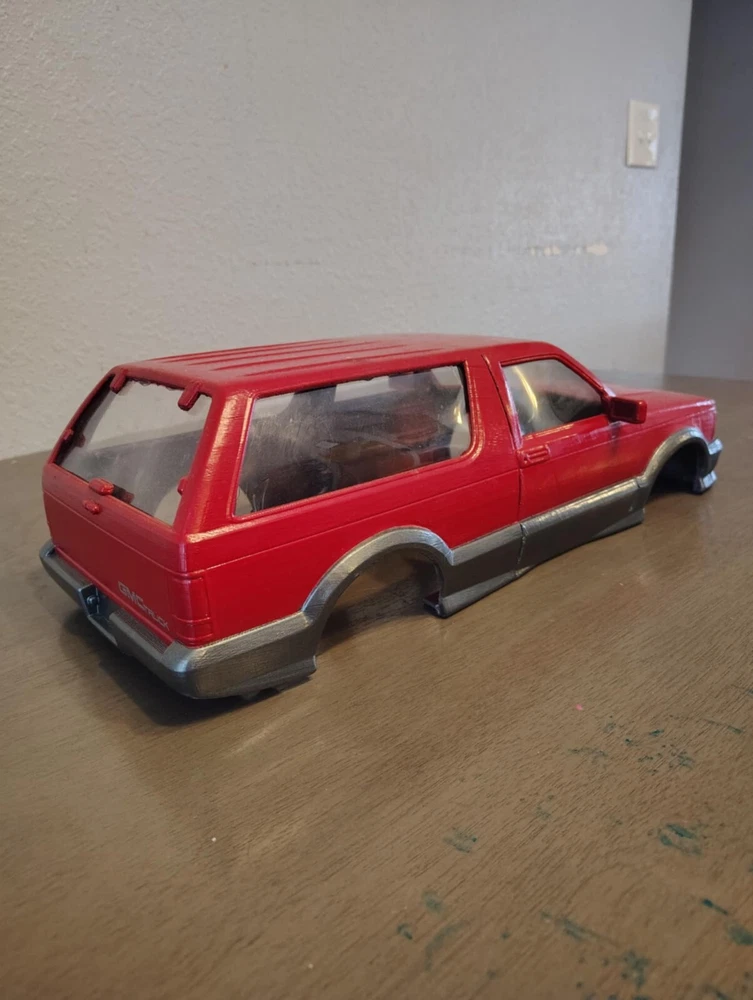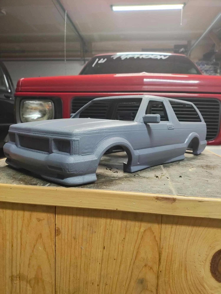 This 3D print is of a GMC Typhoon. It comes SHIPPED IN 2 PIECES AND UNPAINTED JUST AS A SHELL (NO GLASS). All orders will be printed in Gray, if you would like white or black please message me. The photos you see are on a Fazer mk2 FZ02L 1/10 scale frame and required very little trim work to fit. YOU WILL NEED TO PROVIDE MOUNTING HARDWARE. We set this one up on magnetic mounts mainly for the clean look it gives by not having the pins stick through the body. The wheel base is 274 mm, and the front wheel to wheel width is 203 mm. KEEP IN MIND THIS IS 3D PRINTED AND MAY HAVE SMALL BLEMISHES BUT I HANDLE EVERY PRINT TO ENSURE THE BEST QUALITY TO MY ABILITY AND IF I BELIEVE ITS NOT TO MY STANDARDS I WILL FIX IT OR RE-PRINT IT. Any other questions, please ask and thanks. Design by Gauderio designs 3d