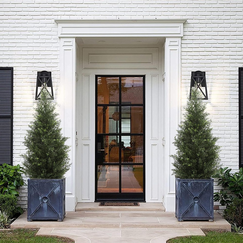 Transform your outdoor space with these stunning 3-foot or 4-foot artificial cedar topiary trees. This set of 2 potted cypress trees brings the timeless elegance of manicured landscaping without the maintenance. Each tree features meticulously detailed, UV-resistant foliage that maintains its rich green color throughout the seasons. The classic conical shape and dense branch arrangement create a sophisticated silhouette perfect for framing entrances, enhancing porches, or adding structure to garden designs. Arriving in sturdy black planters, these versatile decorative trees can be used straight away or transferred to decorative containers of your choice. Their realistic appearance and durable construction make them ideal for both indoor and outdoor use, offering year-round greenery without watering or pruning. At 3 feet or 4 feet tall, these topiaries provide the perfect scale for entryways, patios, or as accent pieces in your landscape design. ALL-WEATHER UV PROTECTION OUTDOOR TOPIARY TREES: Engineered with premium UV-resistant foliage that withstands intense sun exposure & heavy rainfall while maintaining true evergreen coloration. Perfect for permanent outdoor display on patios, porches, or garden landscapes without fading concerns ULTRA-REALISTIC ARTIFICIAL CEDAR TREES: Realistic textured cedar foliage and natural green coloring creates a convincing evergreen look; Two height options (3 ft and 4 ft) for versatile indoor/outdoor display coordination MULTI-FUNCTIONAL DECOR FOR EVERY SPACE: Creates effective visual barrier when placed in pairs; Use as windbreak partitions for pool areas, driveway border markers, or commercial property accents. Ideal for enhancing porches, front doors, gardens, patios, or indoor spaces with maintenance-free greenery, whether it is for home, office, commercial space, or holiday decorations, this cedar tree can easily create a different atmosphere and style ZERO MAINTENANCE ARTIFICIAL CEDAR TOPIARY TREES: Bring the beauty of nature into your space without the hassle of maintaining traditional plants. Special updated coating on the leaves helps maintain color and prevents fading when placed in outdoor settings. The premium construction makes them resistant to fading and weather damage. Perfect alternative for high-traffic commercial spaces or busy homeowners MULTI-LOCATION READY USE: Pre-potted in weighted planters for immediate placement stability, these topiary trees require no assembly and can be placed immediately for instant decoration. Weighted bases prevent tipping in windy conditions; Compatible with various outdoor surfaces (concrete deck gravel); Neutral planter complements modern and traditional decor schemes