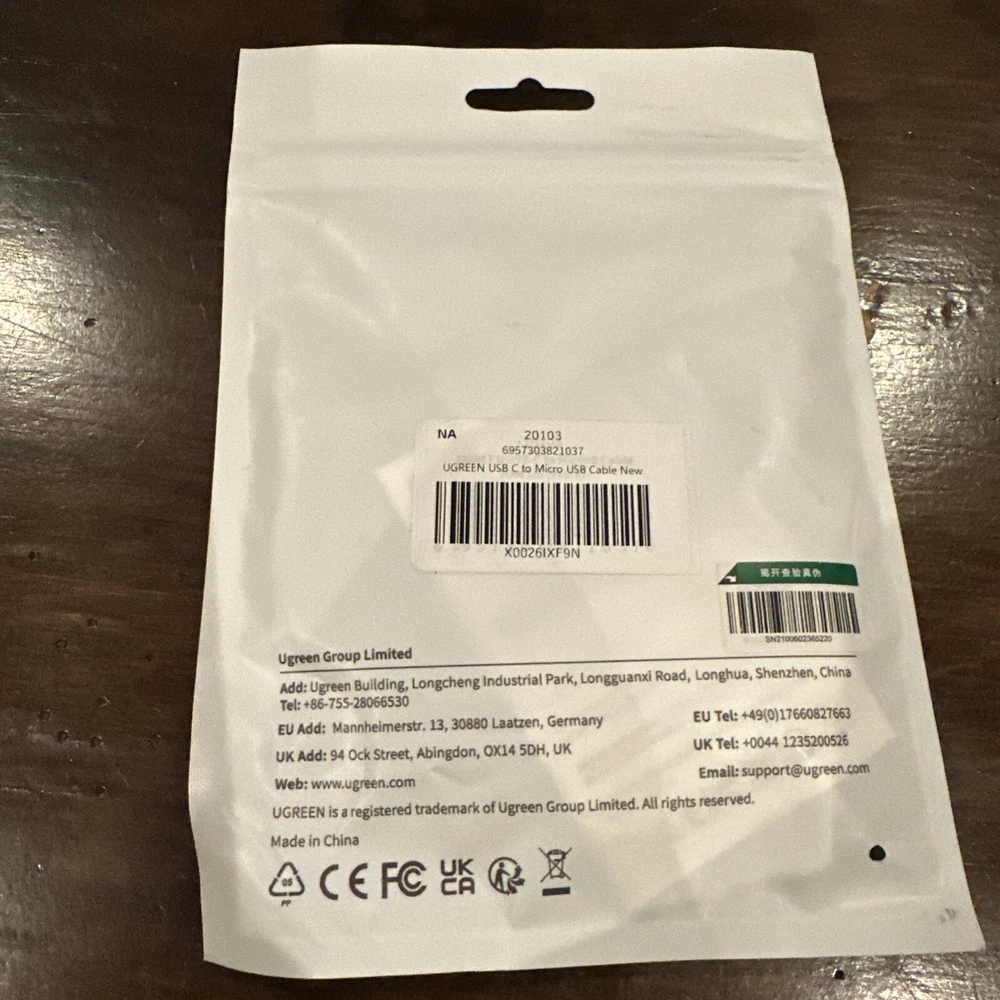 Mounting Location:DesktopVersion:3.1Items Included:Charging & Data Sync Cable, Charging Cable, Data Sync CableItem Length:100cmManufacturer Warranty:1 YearTheme:For SSD HDD External Hard Drive Disk Smartphone MacBook PCConnectivity:USB-CBundle Description:USB 3.0 Type C to Micro B CableMaterial:PVCCompatible Brand:Universal, For ASUS, For Honor, For HTC, For Huawei, For Lenovo, For LG, For Motorola, For OnePlus, For OPPO, For Samsung, For Sony, For Xiaomi, For ZTEType:Charging & Data Sync CableBrand:UGreenCable Length:3 ftNumber of Ports:1Colour:BlackCompatible Model:For SSD HDD External Hard Drive Disk Smartphone MacBook PCFeatures:Fast Charge, Flexible, Glossy, Rugged, ShockproofColor:BlackMounting Type:GripVoltage:5 VDesign/Finish:HybridPersonalisation Instructions:USB 3.0 Type C to Micro B CableMPN:Does not apply