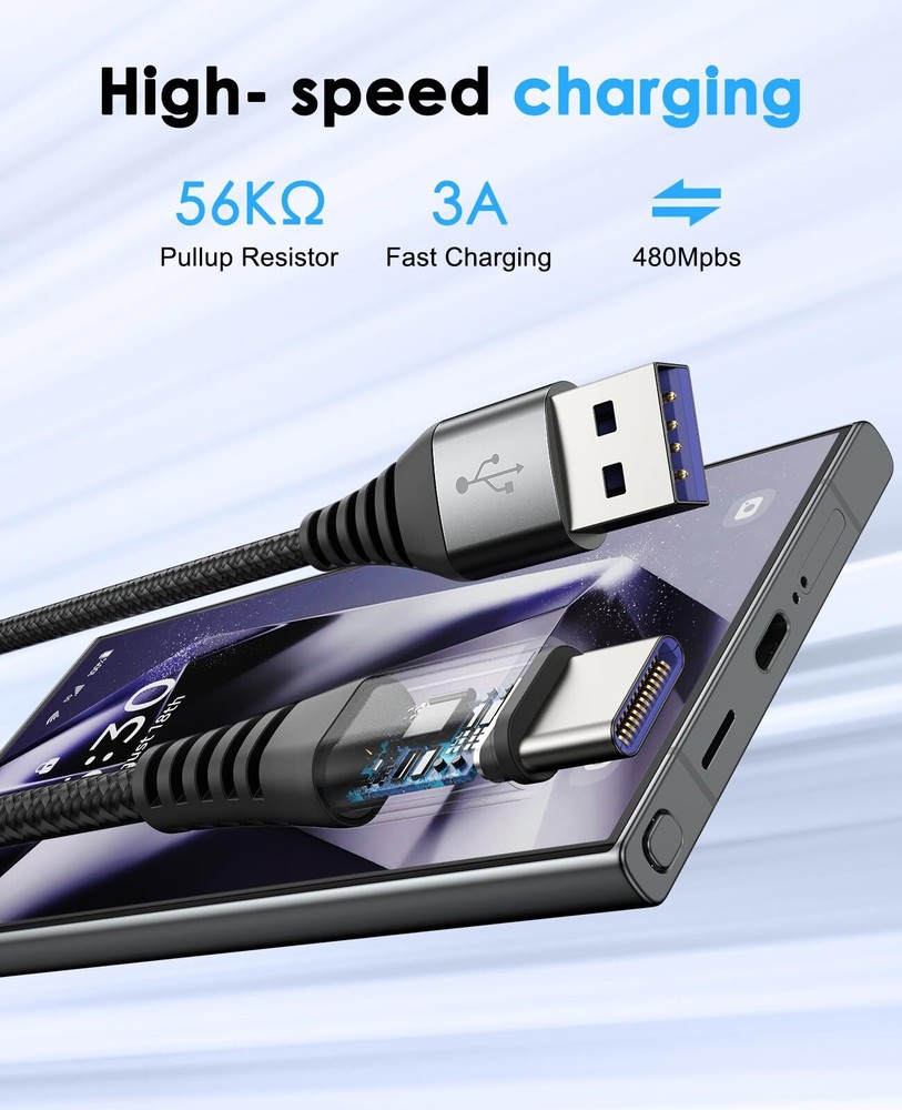 $ 12.145-Pack Braided USB-C Cables 3FT/6FT/10FT Fast Charging A to C