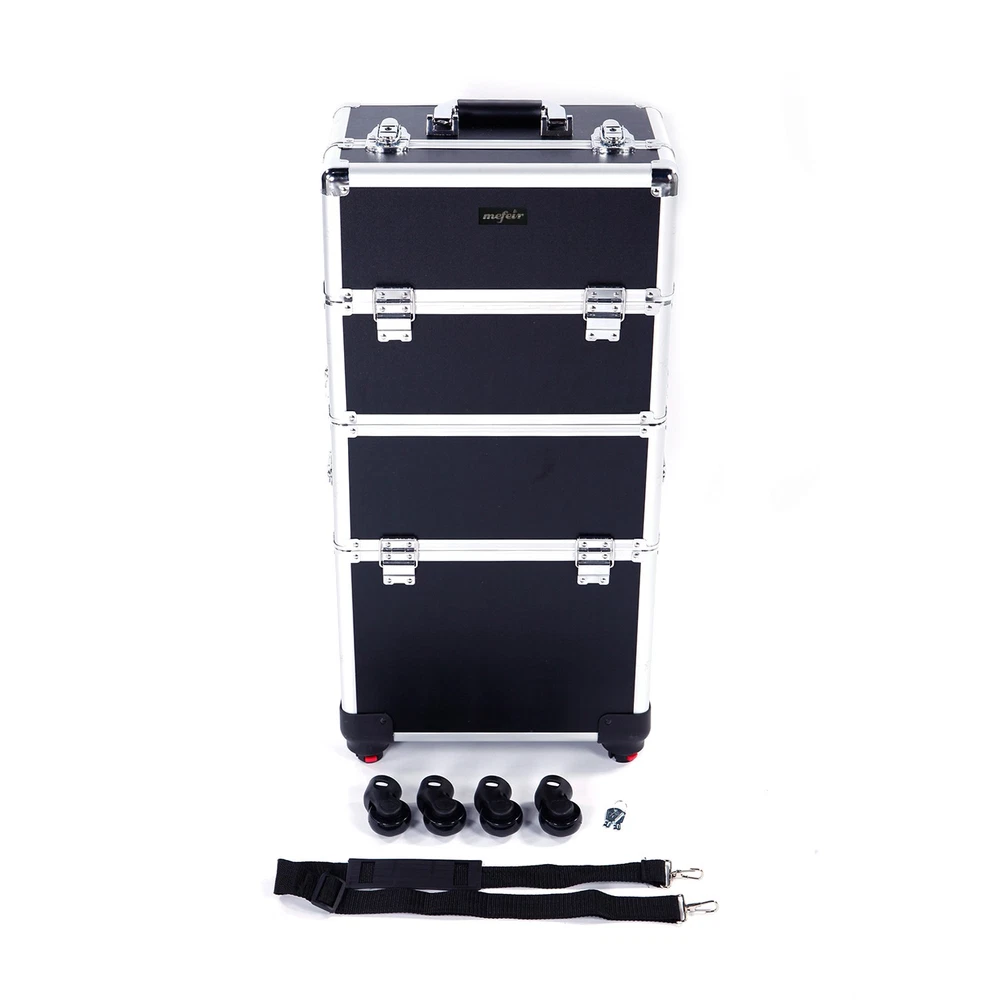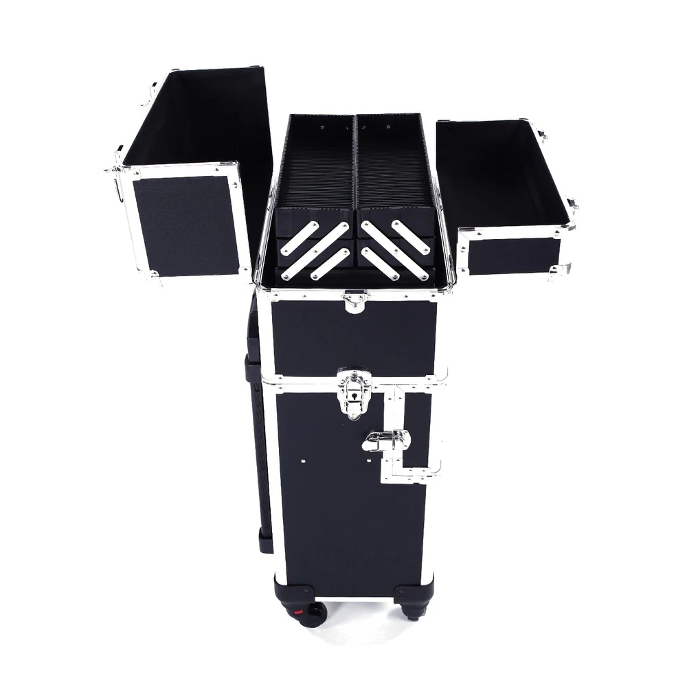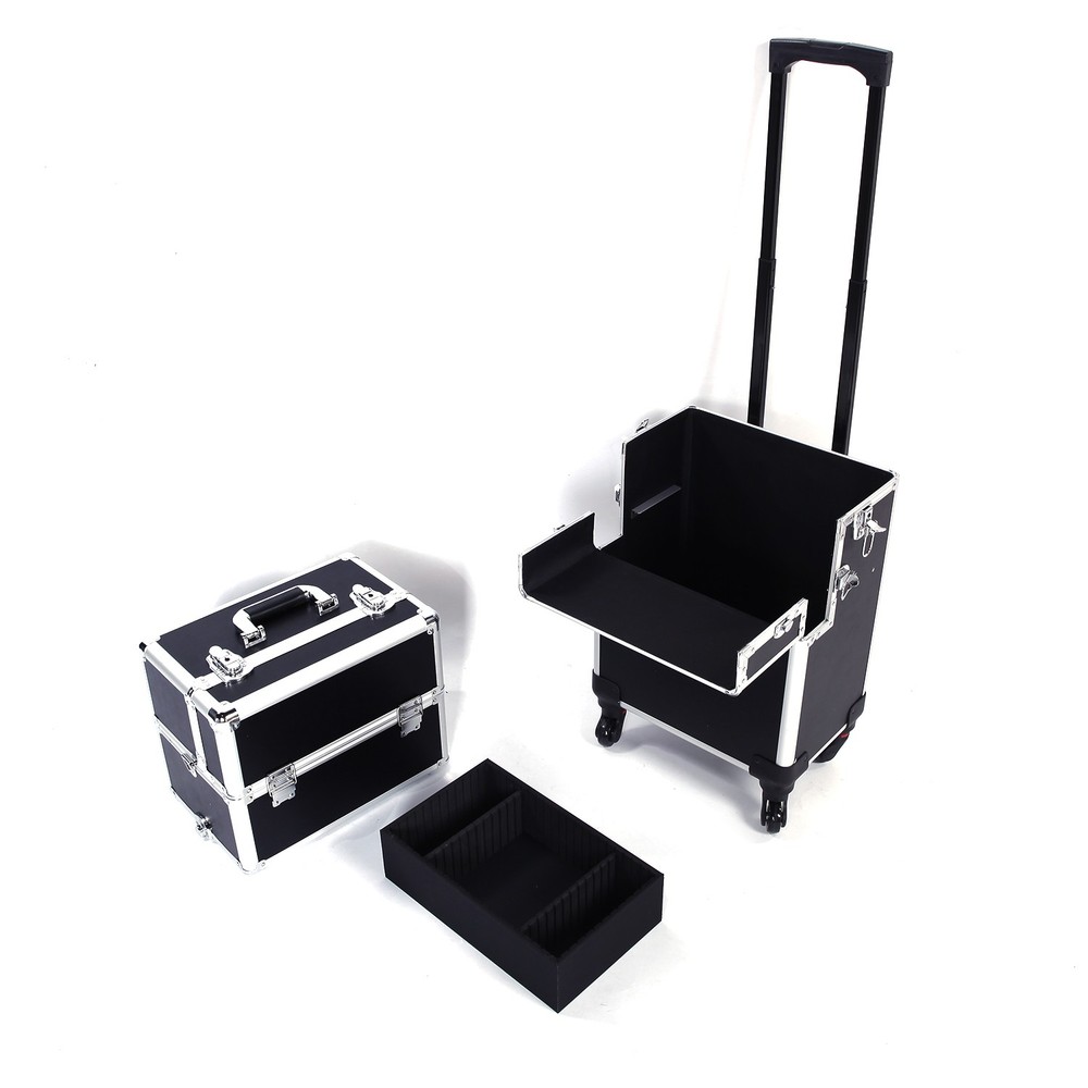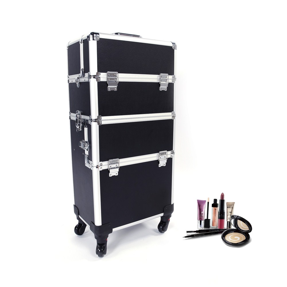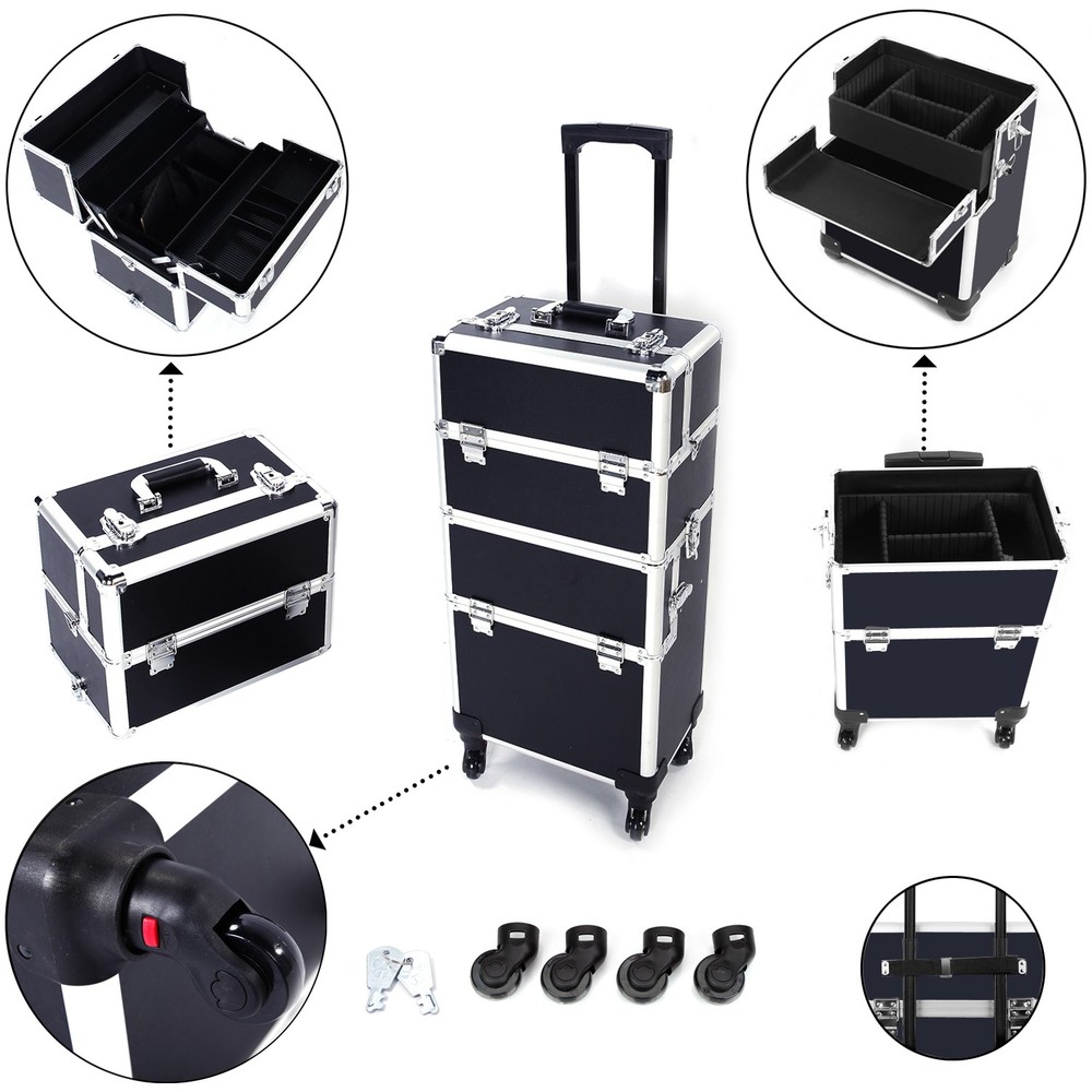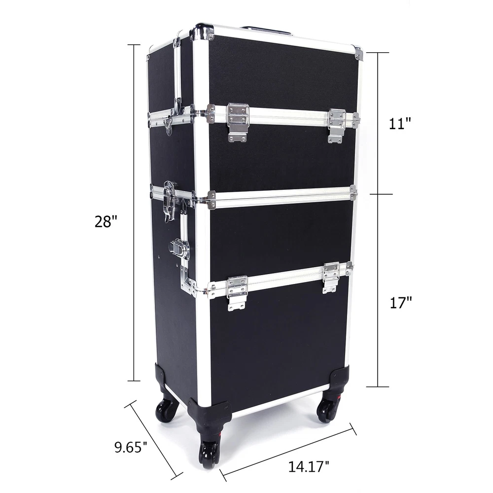 3-in-1 Aluminum Makeup Train Case with Large Storage Trolley Box