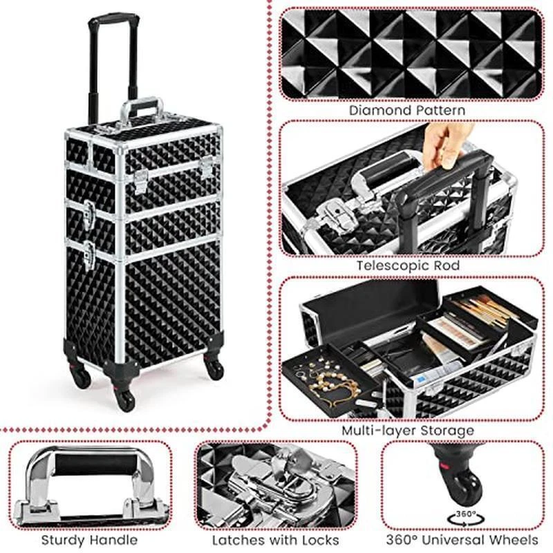 3-in-1 Large Rolling Makeup Case Organizer Portable Travel Trolley