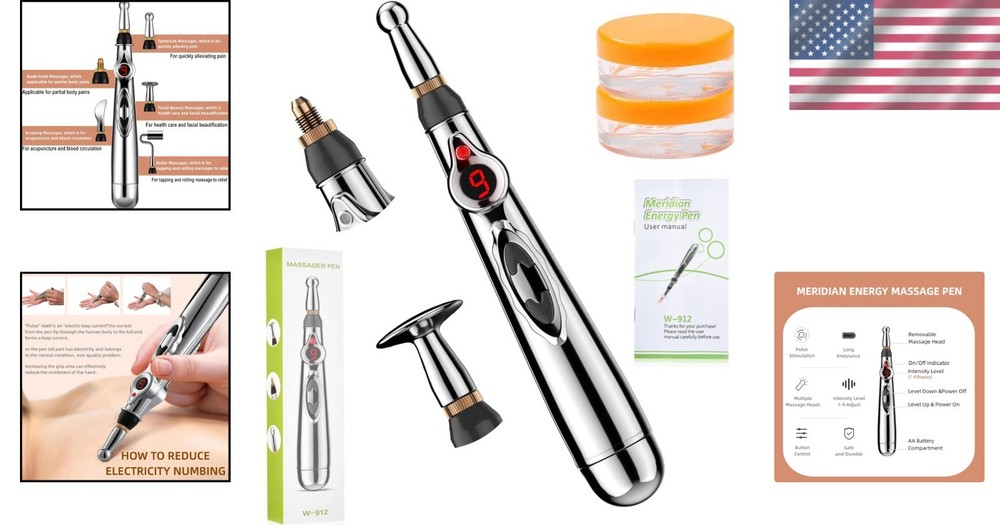 3-in-1 Massage Acupuncture Pen, Electronic Pain Relief Therapy, Meridian Energy Massager Pen Self Massage Tools Muscle Healing with Massaging Gel ‹ › ‹ › ‹ › ‹ › ‹ › ‹ › ‹ › ‹ › 3-in-1 Massage Acupuncture Pen Electronic Pain Relief Therapy Meridian Energy Massager Pen Your Essential Self Massage Tool for Muscle Healing Product Features: Includes three interchangeable massage heads: Dome Shape, Spheroidal Shape, and Node Head. Each head is designed for unique applications, allowing for customized therapy experience. Two massaging gels are included for enhanced relief and healing. Dome Shape Head alleviates pain and rejuvenates muscle quickly. Spheroidal Shape Head provides gentle massage for reduced muscle tension. Node Head delivers deep, intense pulses for effective pain relief. Operates on a single AA battery, enabling low-voltage therapy that safely transmits mild electric currents to painful areas. Features 9 adjustable intensity levels to cater to your therapeutic preferences. Needle-free, painless treatment that encourages healing, muscle relaxation, and improved skin condition. Benefits of Our Meridian Energy Massager Pen: Experience deep tissue healing at your convenience. Relieve pain and muscle discomfort effectively. Promotes muscle relaxation and enhances skin condition with consistent use. Personalized therapy with adjustable intensity levels for varying needs. Compact and portable design makes it perfect for home use, travel, or at the office. Why You Should Choose Our 3-in-1 Massage Acupuncture Pen: Transform your self-care routine with our innovative 3-in-1 Massage Acupuncture Pen. Designed for those seeking effective, needle-free pain relief, this versatile massager allows you to tailor your therapy to your unique needs. Whether you need quick pain alleviation, gentle muscle relaxation, or intense pulse therapy, this pen has you covered. Utilizing biological microelectrical impulses, it targets key acupuncture points while promoting tissue healing, muscle relaxation, and skin condition improvements. Expect nothing less than serenity and revitalization with each use. Elevate your wellness journey and discover the beauty of painless therapy today! Get your 3-in-1 Massage Acupuncture Pen now and start experiencing holistic healing like never before! Shipping Free & Fast Shipping - We offer free shipping to most of the USA with a normal delivery time of 3-7 days. However, due to the current situation, additional delivery time (up to 3 weeks) may be required for some items. Alternative Carriers - We may use alternative carriers (e.g. USPS, FedEx, UPS, etc.) to ensure your package arrives safely and on time. Due to the use of multiple carriers, we are unable to provide a tracking number automatically. Handling Time - Orders are processed and shipped within 1-2 business days of receiving cleared payment. Shipping Restrictions - Shipping to Alaska, Hawaii, Puerto Rico, Guam, and other US territories may incur shipping charges or delivery restrictions. Please contact us before ordering, or your order can be refunded/cancelled. State Restrictions - There may be restrictions based on your state of purchase. For example, certain items may not be shipped to California due to state regulations. Contact for Tracking Updates - If you require tracking updates or have any concerns about the delivery of your order, please feel free to contact us, and we will be happy to assist you. Return 30-Day Hassle-Free Returns - We want you to be completely satisfied with your purchase. If you are not, you can return the item within 30 days of receiving it for a full refund or exchange. Easy Return Process - To start a return, simply contact us and we will provide you with a prepaid return shipping label and detailed instructions. Restocking Fee - There are no restocking fees for returns. However, the buyer is responsible for return shipping costs if the return is not due to a seller's error. Refund Processing Time - Refunds will be processed within 5 business days of receiving the returned item in its condition. Payment We accept all major credit cards, PayPal, and Apple Pay for your convenience. Your payment information is secure and encrypted to ensure a safe and seamless transaction. Please complete your payment within 3 days of purchase to avoid any delays in shipping. Feedback Your feedback is extremely important to us. We strive to provide the best products and customer service possible. If you are satisfied with your purchase, please take a moment to leave us a positive review. If you have any concerns or issues with your order, please contact us before leaving negative feedback. We are committed to resolving any problems and ensuring your satisfaction. Contact Us If you have any questions or concerns, please feel free to out to our customer support team. You can contact us through the eBay messaging system. We are available Monday to Friday, 9:00 am to 5:00 pm EST, and we will do our best to respond to your inquiry within 24 hours. Buy it now and enjoy a pleasant shopping experience! Unit Quantity: 0.29 pounds Labels & Certifications: Massage Therapy Tools Voltage: 1 AA Body Area: Full Body Massage Functions: Pain Relief Features: Lightweight,Rechargeable Material: Metal Number of Massage Heads: 3 Power Source: Battery Type: Massage Therapy Tools Color: Silver Item Weight: 0.29 Pounds Endurance Time: Not Specified