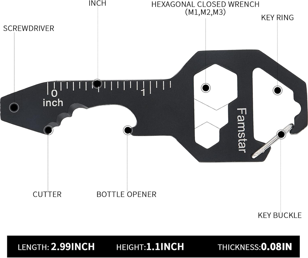 Store New Arrivals Add to Favorite View Feedback Contact Keychain Multi-Tool 3Pack Metal Pocket Tool Portable No Rust Wrench for Screw,Ruler and Bottle Opener,19 in 1 Total Routine Maintenance. Description Item model number 2021-1 Item Package Quantity 1 Item dimensions L x W x H 2.9 x 1.02 x 0.07 inches Part Number AUB096BK4RR1 Color Keychain Black Included Components Plier, Wrench, Screwdriver, Ruler, Bottle Opener, Spanner Product Dimensions 2.9 x 1.02 x 0.07 inches Material Stainless Steel, Metal Style Keychain Multitool Item Weight 0.5 Ounces Batteries Included? No Folded Size 1.02 x 0.07 x 2.9 inches Batteries Required? No Number of Pieces 18 Keychain Pocket Tool:Rich functions,3 Pack with contains 18 functions,Metal forging is very durable,Including a Bottle Opener,Flathead Screwdriver,Inch ruler,Cord Cutter,Wrench of Various Inches. Multi tool Small but powerful:Stainless Steel Key Shaped Pocket Tool,Small and easy to carry,Made of stainless steel with strong hardness and durability,not easy to rust. Key chain:Cool decoration tools,Never bend or break,Suitable for ordinary people's daily life, It is a necessary tool for travelers, backpackers, hikers, cyclists and adventurers. Bottle opener 100% Stainless:The size is only 3 inches,weighs only 14g,lightweight and compact enough to fit right on your keyring,Also small enough to fit into a slot on your wallet. 3Pack Multi-tool:18 in 1 Multi-Function,It to be an easy companion for your every day carry.This Multi-tool makes a perfect gift for your boys,men. Product Description Let's go on a trip! Life is not just about living in the present, but also about poetry and distance! If you love nature but don't like carrying cumbersome luggage, then the Famstar key tool will become an indispensable companion on your journey! Diverse styles and attention to details Convenient to Carry Due to the small size of this key tool, we can easily carry it in our daily life without causing any burden on your life. On the contrary, it is a small helper in your life! Hard Material Due to the use of stainless steel, electroplating material, and technology, this product's hardness can solve most of the problems in your daily life! Versatile Tool Every detail has undergone careful consideration and practice before it can have its current shape, showcasing as many uses as possible on a thing and creating its value! Multi scene coverage Scene reproduction Each product has been repeatedly deliberated by us, so that it can be used in multiple scenarios. Whether it is a Bottle opener or a screw wrench, it is easy to operate, bringing convenience to your life, which is the significance of its existence. Multifunctional use Spoke wrenches This keychain tool comes with an internal diameter wrench, which can effectively eliminate the embarrassment of needing help in daily work and enable you to quickly complete tasks. Imperial scale This keychain tool comes with its own scale, which can provide assistance when you need measurement urgently! Press the switch The design of the key buckle is for better portability, whether it's hanging the key, backpack, or various places, it will be easy to operate! Bottle opener When you want to have a drink and chat with a few friends, it is still your help to quickly enter the atmosphere, drink heartily, and have fun! Enjoying travel and warm companionship Traveling does not necessarily involve trekking through mountains and rivers to distant places. When work and study are too busy, it is also a good choice to bring three or two friends to the suburbs for barbecues, camping, and outings. It is also a good choice to watch the sun and watch the clouds roll and relax. ABOUT US We offer the best prices around on high quality products. Our E-store includes media such as books, movies, music and games while offering electronics, toys, sporting apparel, clothing, tools, general home, garden items and more. SHIPPING We are always working hard to ensure your package arrives as soon as possible. Please understand that some factors like weather, high postal traffic, and the performance of shipping companies are outside of our control. We offer free shipping to the lower 48 states and ship within 2 business days of payment, usually sooner. We do not accept P.O. Boxes. Please provide a physical address. For shipping outside of the continental USA, we only use eBay's Global Shipping Program.The item is shipped to KY and then sent to the rest of the world. International customers are responsible for all duties and taxes. Continue to check out in order to calculate costs for shipping the item to your country. Messages regarding eBay's Global Shipping Program MUST be directed at eBay EXCLUSIVELY. RETURNS We offer a 30-Day Return Policy on items which you are not completely satisfied with. You have the option for a full-refund or an exchange of the item. No returns are available on items shipped outside of the USA. PAYMENT We accept PayPal. CONTACT US This page content is yet to come Please ad us to your favorite seller and visit again later Thank You CUSTOMER SATISFACTION We try our very best to make sure every customer is completely satisfied. If there's a problem, message us! We're happy to help. WE ACCEPT Copyright © 2021 AutoDS. | All Rights Reserved