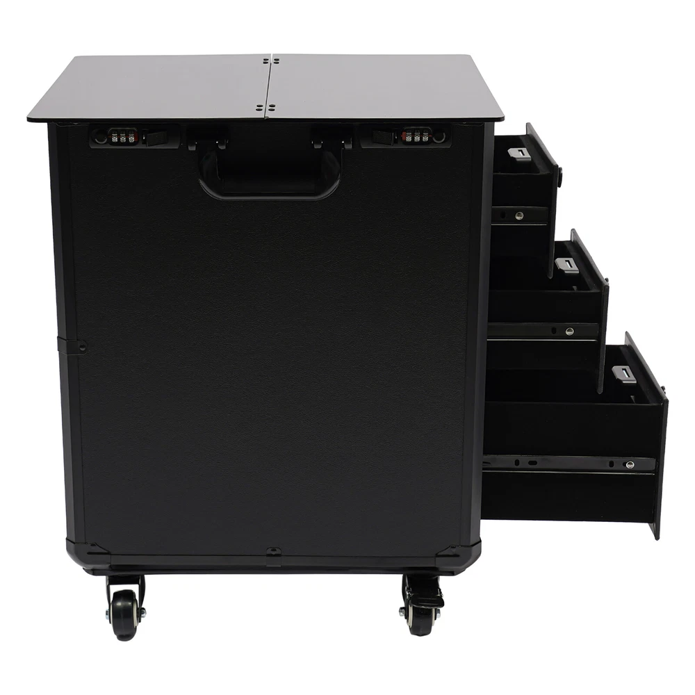 Features: Adjustable, With Lock, Tiered MPN: Does not apply Item Weight: 13kg/28.66lbs Type: Lipstick Case UPC: Does not apply Number of Side Drawers: 3 Plug Type: US Standard Shape: Rectangular Wheel: 4 Universal Wheel (With Two Brakes) Color: Black Mounting Type: Floor Standing Pull Rod Adjustable Height: 13-38cm/5.12-14.96in Brand: Unbranded Overall Product Size: 42*28*53cm/16.54*11*20.87in Carrying Method: Hand-held, Hand-pulled gtin13: Does not apply Material: Manganese Steel, Acrylic, PU Load Bearing Capacity: 20kg /44.09lbs
