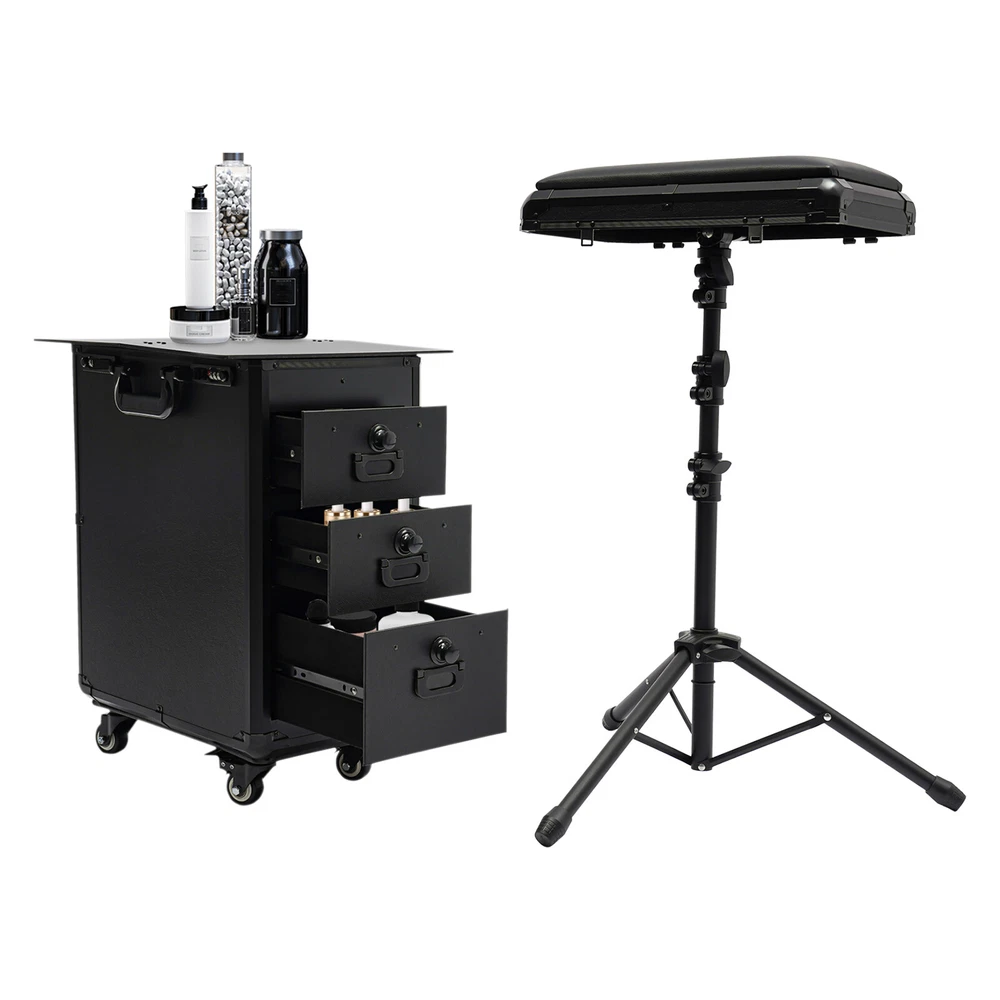 3-in-1 Tattoo Travel Kit with Armrest Stand & Rolling Makeup Train Case