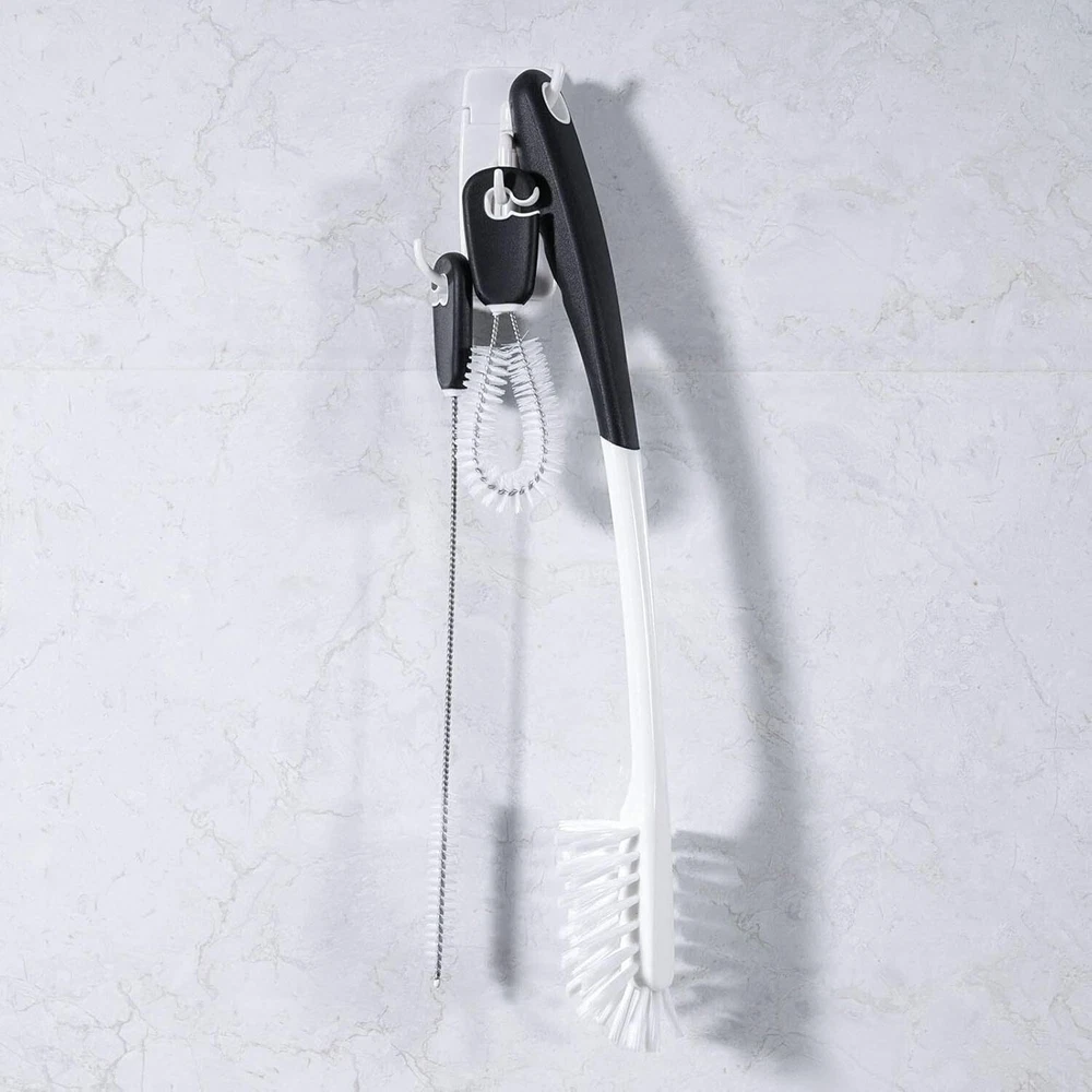 3-in-1 Water Bottle Cleaning Brush Set, Long Handle Black, White Product Details Is Discontinued By Manufacturer : No Product Dimensions : 14.2 x 2.5 x 1.9 inches; 4 ounces Item model number : JB004 Manufacturer : MOSOLAN Brand: MOSOLAN Color: Black, White Handle Material: Rubber Specific Uses For Product: Water Bottle, Bottle, Dish Product Dimensions: 14"L x 2.36"W x 2.36"H Three Tools In One: Water bottle cleaning set includes a long bottle brush, straw brush and detail cleaner with detachable organizer ring and storage hook, to provide a thorough clean for any of your drinking buddies Perfect For Narrow Neck Bottles: The long bottle brush with comfortable grip has soft side bristles that slide easily into narrow neck bottles without scratching bottle walls; while the stiff bristles on the brush tip scrub the bottle bottom for a clean drinking bottle Keep Your Reusable Straws Clean: The straw brush cleans a variety of straws made from silicone or stainless steel thoroughly; make them last by keeping them clean with our straw cleaning brush featuring premium nylon bristles and a rubber handle No More Worry About Hard-To-Reach Places: The detail cleaner gets into the crevices of caps and lids, cleaning screw threads and locations where a large brush can not reach Convenient Storage: All three brushes have long-lasting nylon bristles that won't lose their shape and soft, comfortable, non-slip handles, store together on a handy ring and easily snap off for use; triple swivel hook is self-sticking and keeps your water bottle brush set handy and your home organized
