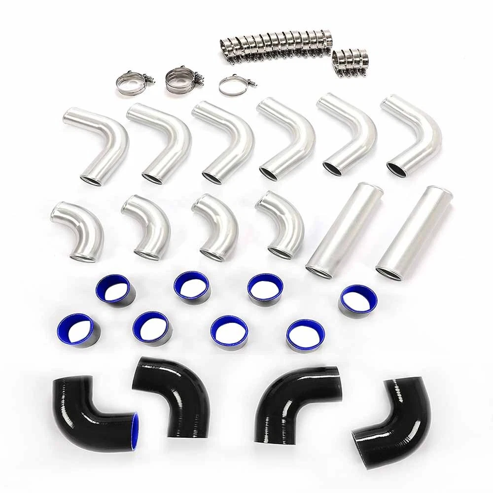 3" 76mm 12pcs Aluminum Universal Intercooler Turbo Piping Hose+T-Clamp Kits Description: Higher Corrosion Resistance: The chrome plating effectively protects the base material from oxidation and corrosion, especially suitable for humid or chemically aggressive environments. Stronger Wear Resistance: The hardness of the chrome plating makes it more resistant to scratches and wear. Lustrous Appearance: Chrome surfaces are usually brighter and more reflective, offering a very striking and attractive look. Better Durability: Due to its resistance to corrosion and wear, chrome-plated items generally have a longer lifespan. Wide Applicability: Chrome plating can be applied to a variety of base materials, not limited to aluminum, offering greater material selection flexibility. Features: Made of High quality Aluminum 3" inch Piping Diameter Increase 65% Air Flow Comparing with other Standard Piping Triple reinforced silicone able to withstand high heat and pressure Will reduce vibration transfer due to hard impact shifting or engine movement Specifications: 100% Brand New Warranty :90 Day Free Reurn:30 Day Color: Chrome / Black as pics shown Surface finish: Oxidation Material: High quality T-6061 Lightweight Aluminum Piping 3" inch Piping Diameter Increase 65% Air Flow Comparing with other Standard Piping Triple reinforced silicone able to withstand high heat and pressure Will reduce vibration transfer due to hard impact shifting or engine movement Fitment: Universal Fitment,Upgrades for turbo car (modification require) Packing List: 2x Straight Aluminum Pipe 6x 90 Degree Mandrel Bent Long Aluminum Pipe 4x 90 Degree Mandrel Bent Short Aluminum Pipe 8x Straight Silicone Couplers 4x Elbow Silicone Couplers 24x Stainless Steel T Bolt Clamps( as shown in the picture ).