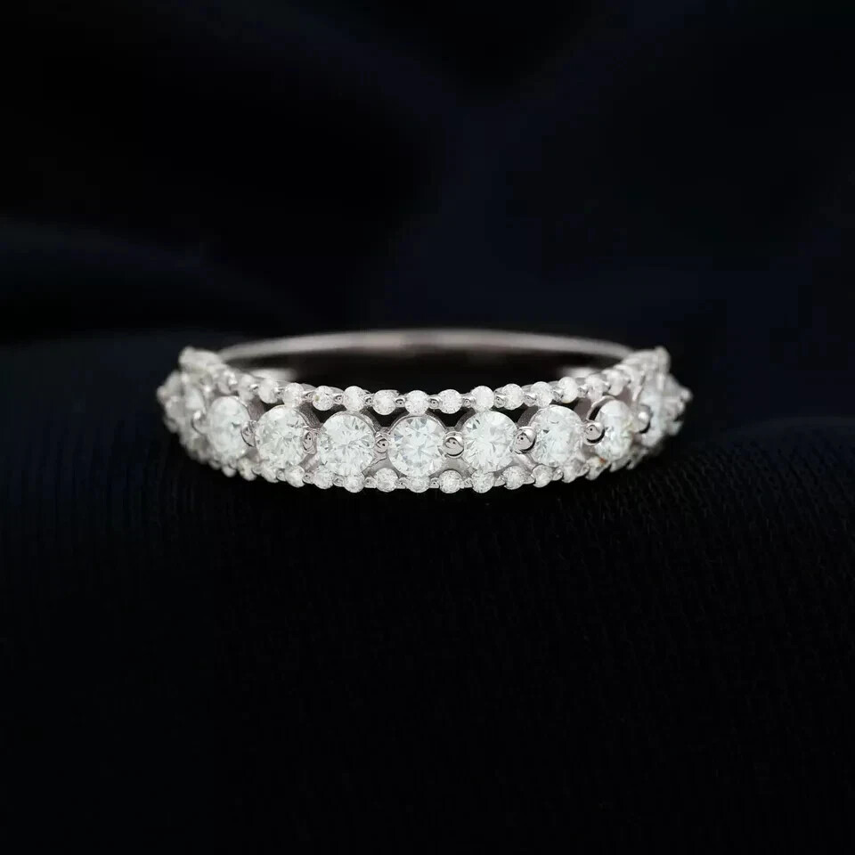 $ 95.040.8Ct VVS1 Round Moissanite Men's 14K White Gold Plated Eternity Wedding Band