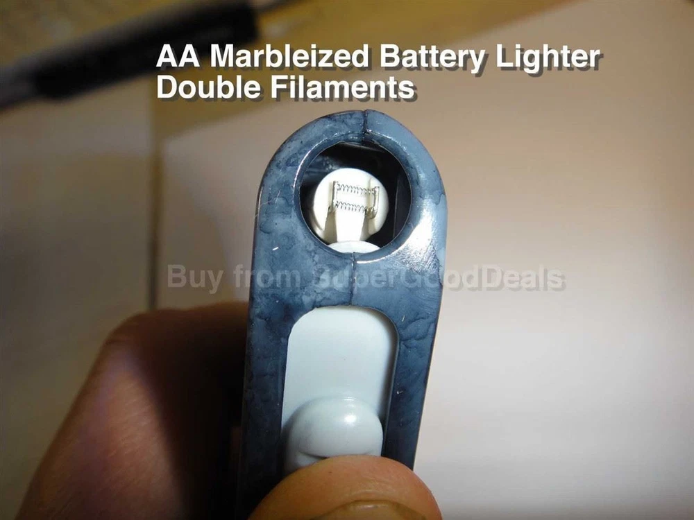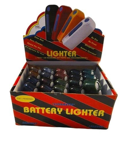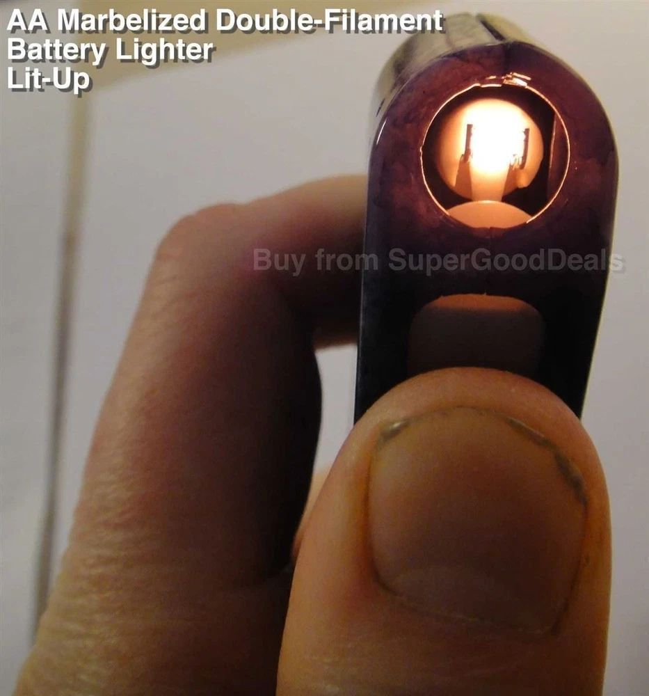 3-pack AA Battery Cigarette Lighter Electric Windproof Flameless Motorcycle 11z 3-pack AA Battery Cigarette Lighter Electric Windproof Flameless Motorcycle 11z 3-pack AA Battery Cigarette Lighter Electric Windproof Flameless Motorcycle This is for a 3-pack, you get THREE of these! If you buy SEVEN 3-Packs or more you get the nice Pop-Up counter display box shown in the last photo. You get one Pop-Up counter display box for EACH Seven 3-packs that you order. Each box holds 20 lighters standing up. These lighters are the extremely hard to find, rare AA battery lighters you thought and wished existed, but can never find anywhere! These have been sold in fine tobacco shops for as high as $49.95 each. They require NO FUEL, they have NO GAS and there is NO FLAME. They are simple to use and so elegant. Simply slide the easy slide switch down and it reveals a heavy-duty electric filament, which instantly heats up, just like a car lighter! Then release the switch and it springs back into the off position and the opening closes and the heated filament goes off, instantly. These come in 4 different marbleized colors. Exact shade of each color may vary. This lighter has TWO filaments instead of one. This way if one burns out, you still have another spare filament that will light up. When buying your lighter, why not get a few spares, in case you accidentally misplace yours or it grows its own legs and walks away. :-) These are so popular, they have been known to grown their own legs and walk away before you even know what happened, if you know what I mean. They also make great gifts for friends and family. Guaranteed, when your friends see you with one of these, they will be jealous and want their own. Buy a box and make lots of people in your life happy! :-) BUY 20 OR MORE & GET THE FREE COLORFUL COUNTER DISPLAY (STORAGE) BOX SHOWN Takes two inexpensive easy to find AA Batteries (batteries not included). Be sure to use strong ALKALINE batteries . Install the two AA batteries in opposite directions, as shown in our photos. IDEAL FOR: motorcyclists (light up at any speed, even 80 mph!) elderly relatives (no open flame to worry about) those who are visually impaired those with arthritis or limited hand dexterity (easy glide on/off switch, goes off when released) refinery and chemical plant factory workers who, for safety reasons, cannot use a butane lighter or other open flame lighter on premises hunting (no open flame to draw attention or affect night vision) camping (no matter how windy, it won't affect lighter) private pilots (no open flame to affect night vision) astronomy (no open flame to affect night vision) climbing (no open flame to burn your rope!) skiing (no matter how windy, it won't affect lighter) lighting fireworks (where legal, no open flame is always nice!) gardening (no open flame to burn your plants down) golf (no matter how windy, it won't affect lighter) fishing (no matter how windy, it won't affect lighter) sailing (no matter how windy, it won't affect lighter) windsurfing (no matter how windy, it won't affect lighter) on the beach (no matter how windy, it won't affect lighter) all outdoor sports (no matter how windy, it won't affect lighter)