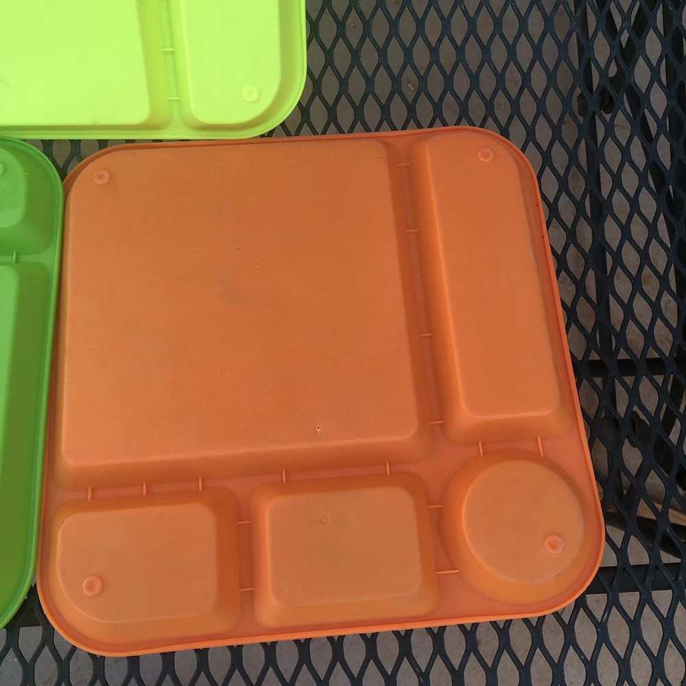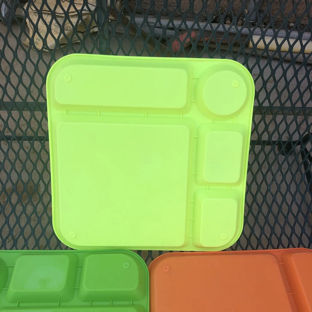 Brand:UnbrandedColor:GreenMaterial:PlasticShape:SquareType:PlateNumber of Items in Set:3Number of Compartments:5Country/Region of Manufacture:ChinaFeatures:Tray