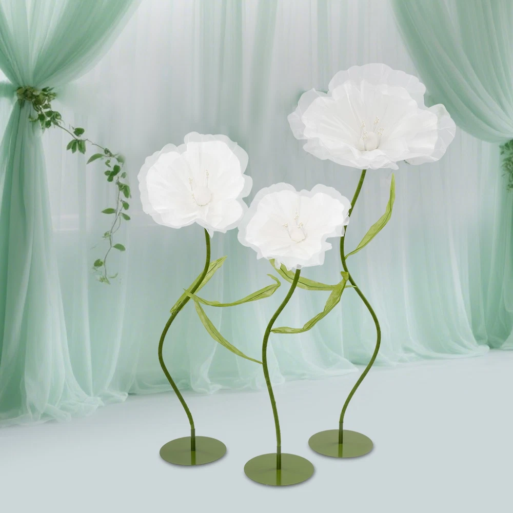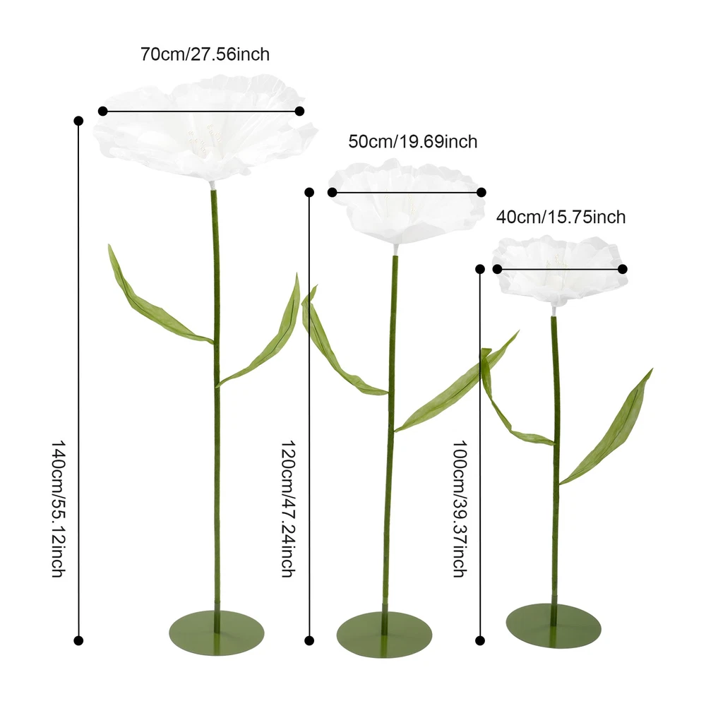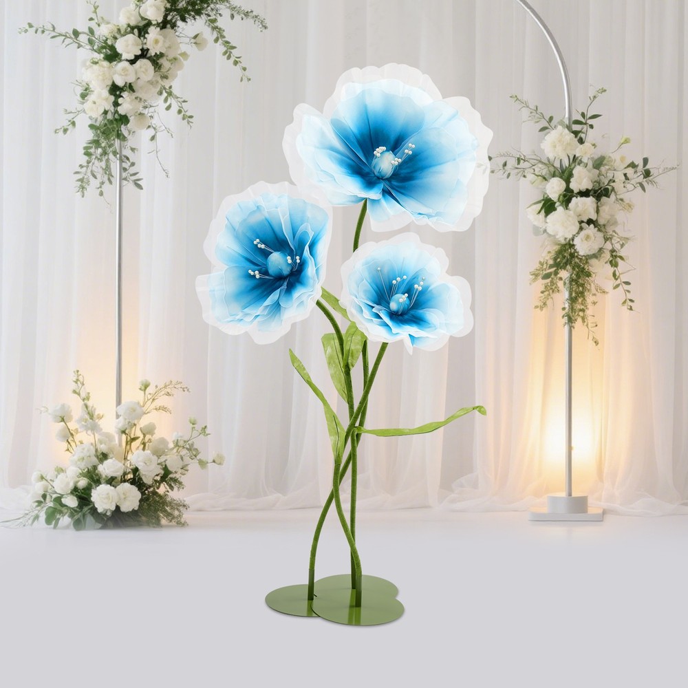 Application This product is suitable for Easter celebrations, spring weddings, live event backdrops, shop displays, photo props, home décor, parties, banquets, stage designs, hotels, apartments, restaurants, etc. Specification Material: Yarn, EVA Foam, Iron, Aluminum-plastic Process: Handmade Color: Light Blue, Green/White, Green/ Light Pink, Green Style: Modern Number of Pieces: 3 Assembly Required: Yes Usage: Wedding, Decoration Product Height: 100 cm/39.37 in; 120cm/47.24 in; 140cm/55.12 in Flower Diameter: 40cm/ 15.75 in; 50cm/19.69 in; 70cm/27.56 in Package Size: 38*38*14 cm/14.96*14.96*5.51 in Gross Weight: 3 kg/6.61 lbs Net Weight: 2.85kg/6.28 lbs Package Included 3* Artificial Flowers WELCOME Description Our artificial flowers, with their stable design, flexible shapes, and excellent cost performance, can help you easily create a romantic sense of ceremony. These flower stems allow you to create a dreamlike atmosphere at will and add a unique touch of beauty to your wedding. Choosing our artificial flowers as wedding decorations will relieve you of the worry about the freshness of the flowers, allowing guests to feel as if they were in a world full of poetry and romance. These exquisite artificial flowers will bring charm to your special day. Key Features Premium Sustainable Material: Crafted for longevity, this product uses premium yarn, EVA foam, iron, and aluminum-plastic materials. The precision handmade process ensures exceptional sturdiness, and resistance to impacts, wear, and deformation, guaranteeing a long lifespan. Dynamic Elegance: Each meticulously crafted flower boasts light blue/white/light pink petals that convey a sense of depth and layering, lending an astonishingly lifelike appearance. Adorned with delicate beaded embellishments, these floral creations are not only visually captivating but also imbued with vibrant and refined elegance, elevating their aesthetic appeal to new heights. Reasonable Proportioned Sizes: The carefully selected heights (39.37 inches, 47.24 inches, 55.12 inches) are suitable for the decoration of wedding venues. They can ingeniously add a romantic and refined atmosphere, enhancing the entire celebration significantly. Such a design not only integrates into the overall layout but also showcases unique beauty and refinement in the details, allowing guests to experience visual enjoyment. Creative Layout with Multiple Possibilities: The flower stems are meticulously crafted from aluminum-plastic tubes, featuring outstanding flexibility and the ability to be bent into various shapes. This feature not only endows the product with diverse postures but also offers possibilities for your creative layout, presenting a distinctive artistic beauty. Easy to Assemble: The whole is composed of four parts, the chassis, the flower stems, the petals, and connecting accessories, and the structure is simple and easy to install. Friendly& Cost-effective: It is recyclable, reusable, and will not wilt or easily fade, which is very friendly to the environment. Compared to real flowers, you can use it for a long time without having to replace it frequently, thus saving you a lot of money. In addition, using artificial plants can avoid allergies. Simple Maintenance: This product doesn't need to be watered or trimmed. If there is dust, you just need to wipe it off with a cloth. Set of 3: You will receive 3 pieces of different artificial flower decorations in a package, which can satisfy various decoration needs. Also, you can buy more to meet your increased needs. Buy with Confidence: We stand behind all our guests and look forward to assisting you with your purchase. It is our pleasure to answer your confusion and questions. The end of the story between us is not "we sell and you buy". Details Reinforced Structural Base: The iron base is firmly placed to ensure it will not tip over and provides ample space for reinforcement. This design not only highlights the stability of the structure but also embodies the combination of craftsmanship and practicality. Embellishing Double-Leaf: Adorning each side of the flower stem, a pair of leaves gracefully enhances the vitality and elegance of the bloom, lending it a more robust and undulating presence. Application This product is suitable for Easter celebrations, spring weddings, live event backdrops, shop displays, photo props, home décor, parties, banquets, stage designs, hotels, apartments, restaurants, etc. Specification Material: Yarn, EVA Foam, Iron, Aluminum-plastic Process: Handmade Color: Light Blue, Green/White, Green/ Light Pink, Green Style: Modern Number of Pieces: 3 Assembly Required: Yes Usage: Wedding, Decoration Product Height: 100 cm/39.37 in; 120cm/47.24 in; 140cm/55.12 in Flower Diameter: 40cm/ 15.75 in; 50cm/19.69 in; 70cm/27.56 in Package Size: 38*38*14 cm/14.96*14.96*5.51 in Gross Weight: 3 kg/6.61 lbs Net Weight: 2.85kg/6.28 lbs Package Included 3* Artificial Flowers Notes Please check the size carefully before ordering. To ensure that the product can be installed firmly, you may need to use more force. Wrinkles may occur during transportation, but don't worry. The petals have their irregular patterns and do not need to be ironed. Please note that this product is not recommended for long-term outdoor use. It should be stored in a place away from direct sunlight and kept dry. Long-term exposure to sunlight and intense high-temperature exposure can affect the color of the product. Please be advised to use a soft brush/cloth (not included) to gently remove dust before use. Please note that the handmade ones cannot be exactly the same as the pictures. Please allow the slight color difference caused by the shooting light and the 1-3 cm error due to manual measurement, and make sure you do not mind before ordering. Payment Delivery details Terms of sales About us Contact us Payment We accept ebay payment 。 Fees such as import duties, taxes are not included in the item price or shipping costs. These c