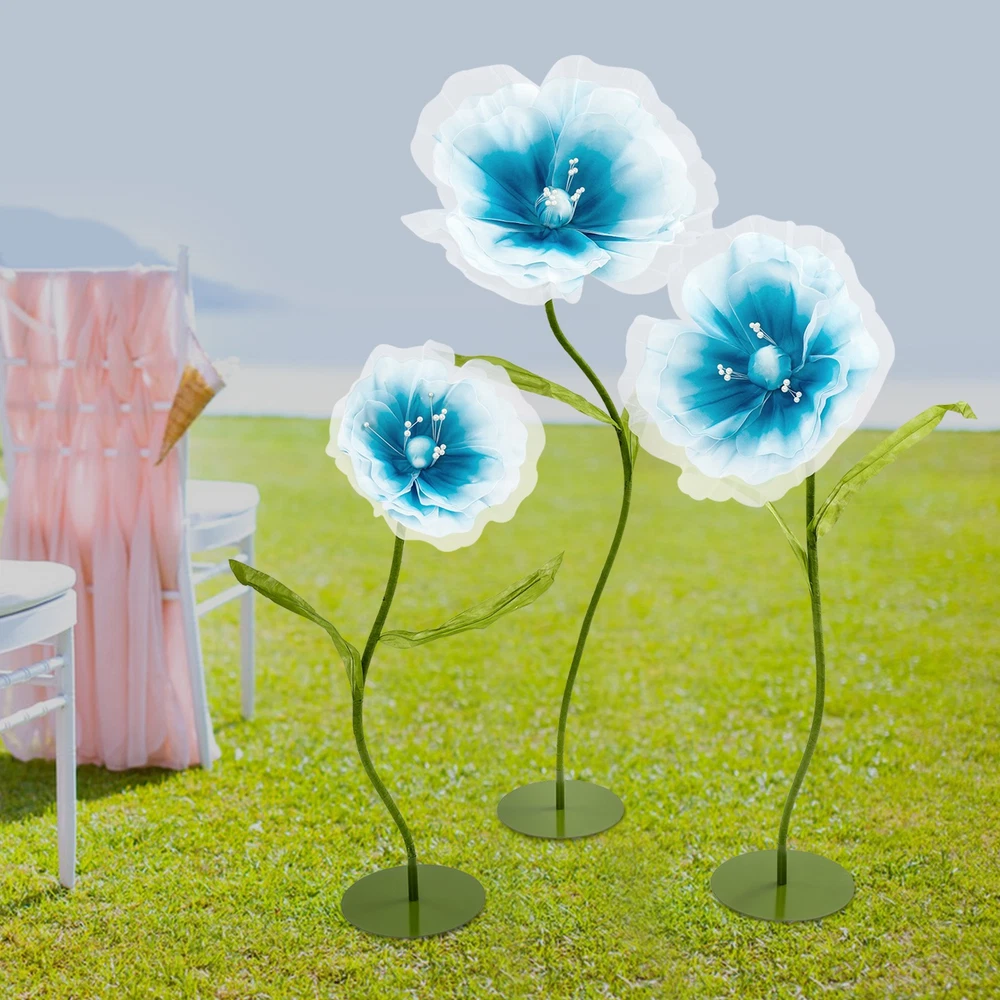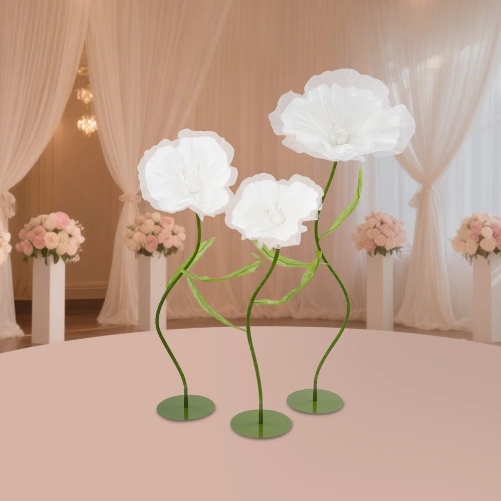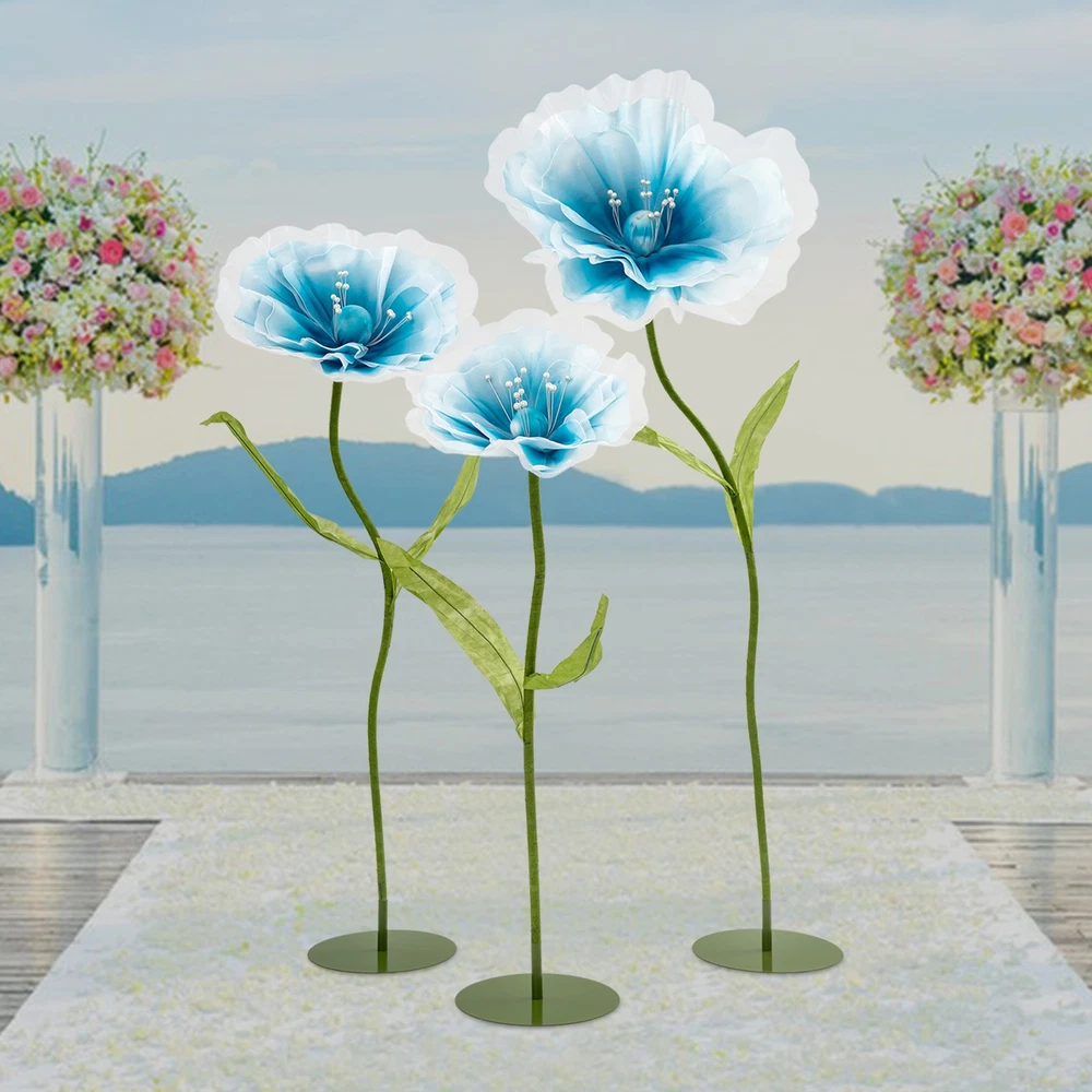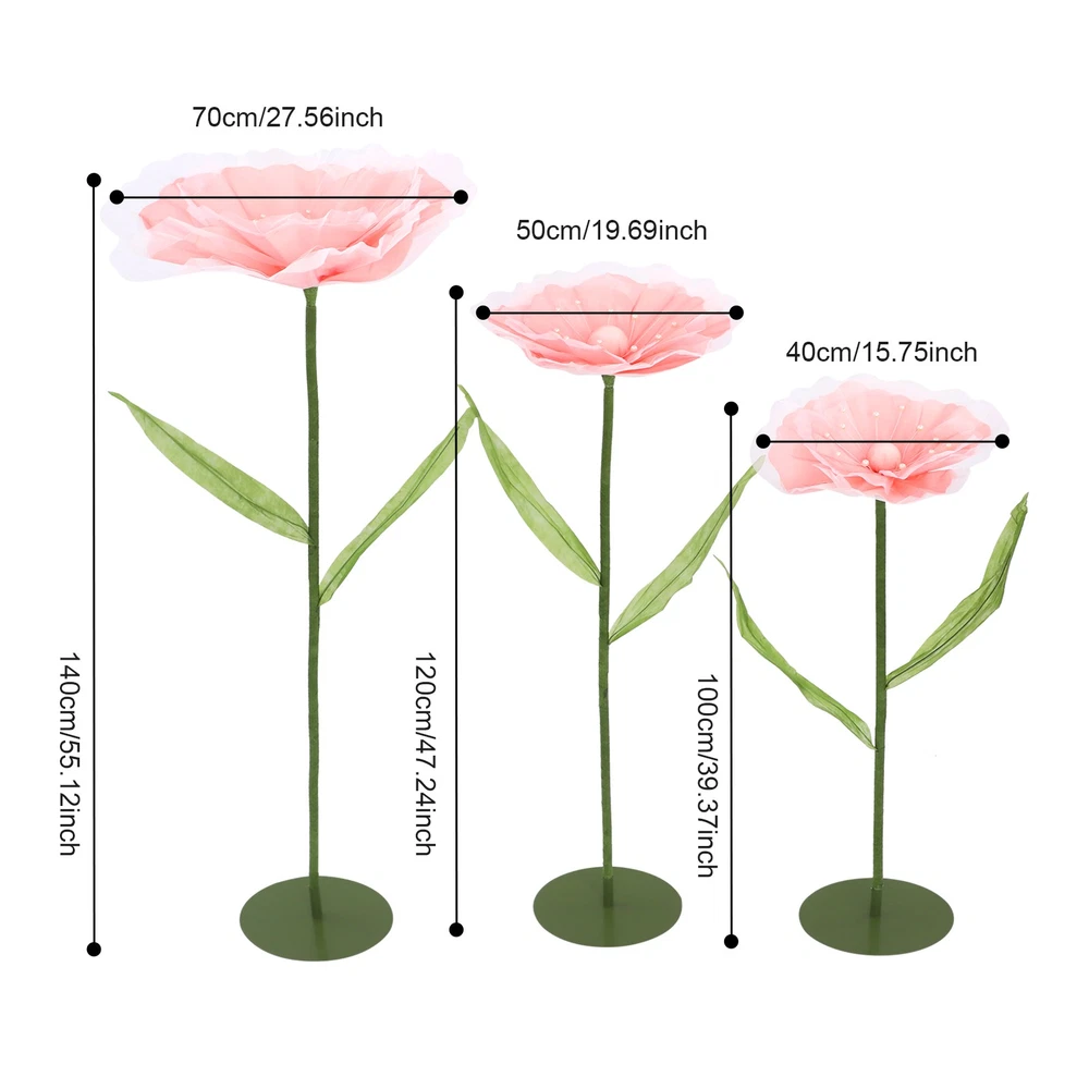 Application This product is suitable for Easter celebrations, spring weddings, live event backdrops, shop displays, photo props, home décor, parties, banquets, stage designs, hotels, apartments, restaurants, etc. Specification Material: Yarn, EVA Foam, Iron, Aluminum-plastic Process: Handmade Color: Light Blue, Green/White, Green/ Light Pink, Green Style: Modern Number of Pieces: 3 Assembly Required: Yes Usage: Wedding, Decoration Product Height: 100 cm/39.37 in; 120cm/47.24 in; 140cm/55.12 in Flower Diameter: 40cm/ 15.75 in; 50cm/19.69 in; 70cm/27.56 in Package Size: 38*38*14 cm/14.96*14.96*5.51 in Gross Weight: 3 kg/6.61 lbs Net Weight: 2.85kg/6.28 lbs Package Included 3* Artificial Flowers WELCOME Description Our artificial flowers, with their stable design, flexible shapes, and excellent cost performance, can help you easily create a romantic sense of ceremony. These flower stems allow you to create a dreamlike atmosphere at will and add a unique touch of beauty to your wedding. Choosing our artificial flowers as wedding decorations will relieve you of the worry about the freshness of the flowers, allowing guests to feel as if they were in a world full of poetry and romance. These exquisite artificial flowers will bring charm to your special day. Key Features Premium Sustainable Material: Crafted for longevity, this product uses premium yarn, EVA foam, iron, and aluminum-plastic materials. The precision handmade process ensures exceptional sturdiness, and resistance to impacts, wear, and deformation, guaranteeing a long lifespan. Dynamic Elegance: Each meticulously crafted flower boasts light blue/white/light pink petals that convey a sense of depth and layering, lending an astonishingly lifelike appearance. Adorned with delicate beaded embellishments, these floral creations are not only visually captivating but also imbued with vibrant and refined elegance, elevating their aesthetic appeal to new heights. Reasonable Proportioned Sizes: The carefully selected heights (39.37 inches, 47.24 inches, 55.12 inches) are suitable for the decoration of wedding venues. They can ingeniously add a romantic and refined atmosphere, enhancing the entire celebration significantly. Such a design not only integrates into the overall layout but also showcases unique beauty and refinement in the details, allowing guests to experience visual enjoyment. Creative Layout with Multiple Possibilities: The flower stems are meticulously crafted from aluminum-plastic tubes, featuring outstanding flexibility and the ability to be bent into various shapes. This feature not only endows the product with diverse postures but also offers possibilities for your creative layout, presenting a distinctive artistic beauty. Easy to Assemble: The whole is composed of four parts, the chassis, the flower stems, the petals, and connecting accessories, and the structure is simple and easy to install. Friendly& Cost-effective: It is recyclable, reusable, and will not wilt or easily fade, which is very friendly to the environment. Compared to real flowers, you can use it for a long time without having to replace it frequently, thus saving you a lot of money. In addition, using artificial plants can avoid allergies. Simple Maintenance: This product doesn't need to be watered or trimmed. If there is dust, you just need to wipe it off with a cloth. Set of 3: You will receive 3 pieces of different artificial flower decorations in a package, which can satisfy various decoration needs. Also, you can buy more to meet your increased needs. Buy with Confidence: We stand behind all our guests and look forward to assisting you with your purchase. It is our pleasure to answer your confusion and questions. The end of the story between us is not "we sell and you buy". Details Reinforced Structural Base: The iron base is firmly placed to ensure it will not tip over and provides ample space for reinforcement. This design not only highlights the stability of the structure but also embodies the combination of craftsmanship and practicality. Embellishing Double-Leaf: Adorning each side of the flower stem, a pair of leaves gracefully enhances the vitality and elegance of the bloom, lending it a more robust and undulating presence. Application This product is suitable for Easter celebrations, spring weddings, live event backdrops, shop displays, photo props, home décor, parties, banquets, stage designs, hotels, apartments, restaurants, etc. Specification Material: Yarn, EVA Foam, Iron, Aluminum-plastic Process: Handmade Color: Light Blue, Green/White, Green/ Light Pink, Green Style: Modern Number of Pieces: 3 Assembly Required: Yes Usage: Wedding, Decoration Product Height: 100 cm/39.37 in; 120cm/47.24 in; 140cm/55.12 in Flower Diameter: 40cm/ 15.75 in; 50cm/19.69 in; 70cm/27.56 in Package Size: 38*38*14 cm/14.96*14.96*5.51 in Gross Weight: 3 kg/6.61 lbs Net Weight: 2.85kg/6.28 lbs Package Included 3* Artificial Flowers Notes Please check the size carefully before ordering. To ensure that the product can be installed firmly, you may need to use more force. Wrinkles may occur during transportation, but don't worry. The petals have their irregular patterns and do not need to be ironed. Please note that this product is not recommended for long-term outdoor use. It should be stored in a place away from direct sunlight and kept dry. Long-term exposure to sunlight and intense high-temperature exposure can affect the color of the product. Please be advised to use a soft brush/cloth (not included) to gently remove dust before use. Please note that the handmade ones cannot be exactly the same as the pictures. Please allow the slight color difference caused by the shooting light and the 1-3 cm error due to manual measurement, and make sure you do not mind before ordering. Payment Delivery details Terms of sales About us Contact us Payment We accept ebay payment 。 Fees such as import duties, taxes are not included in the item price or shipping costs. These c