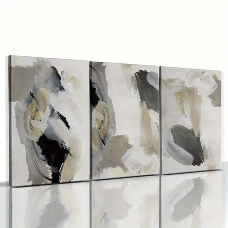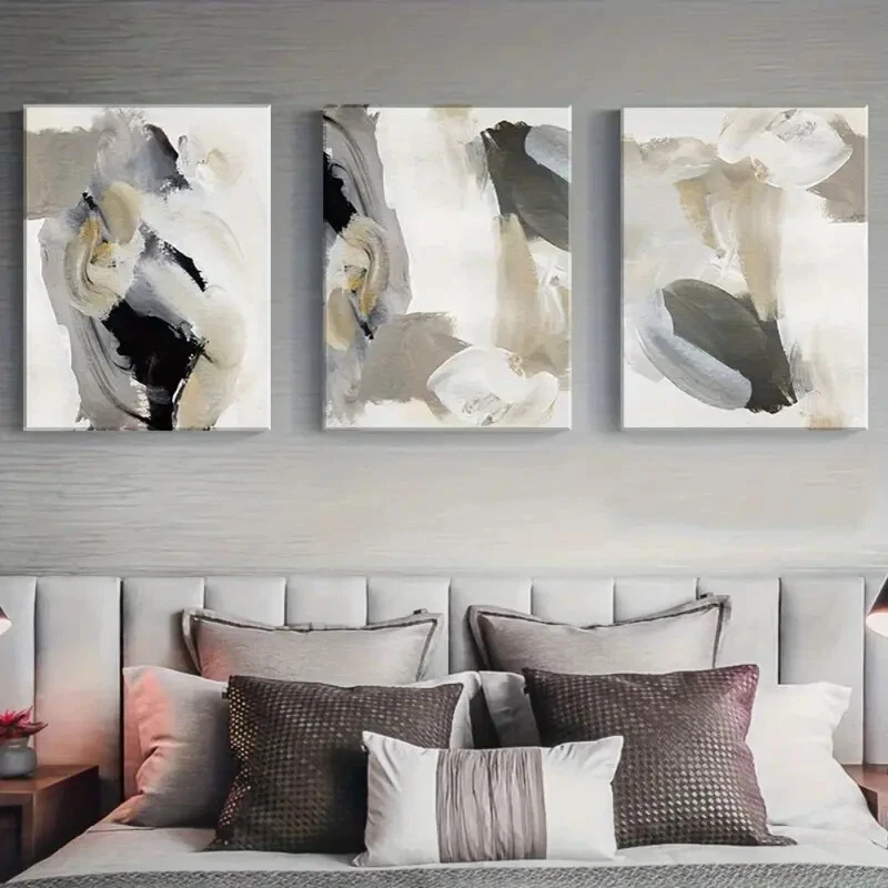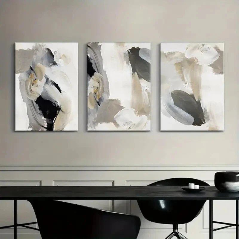 3pcs Black Beige Grey Wall Art Nordic Modern Black and White Canvas Unframed