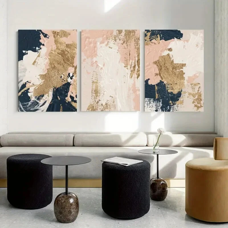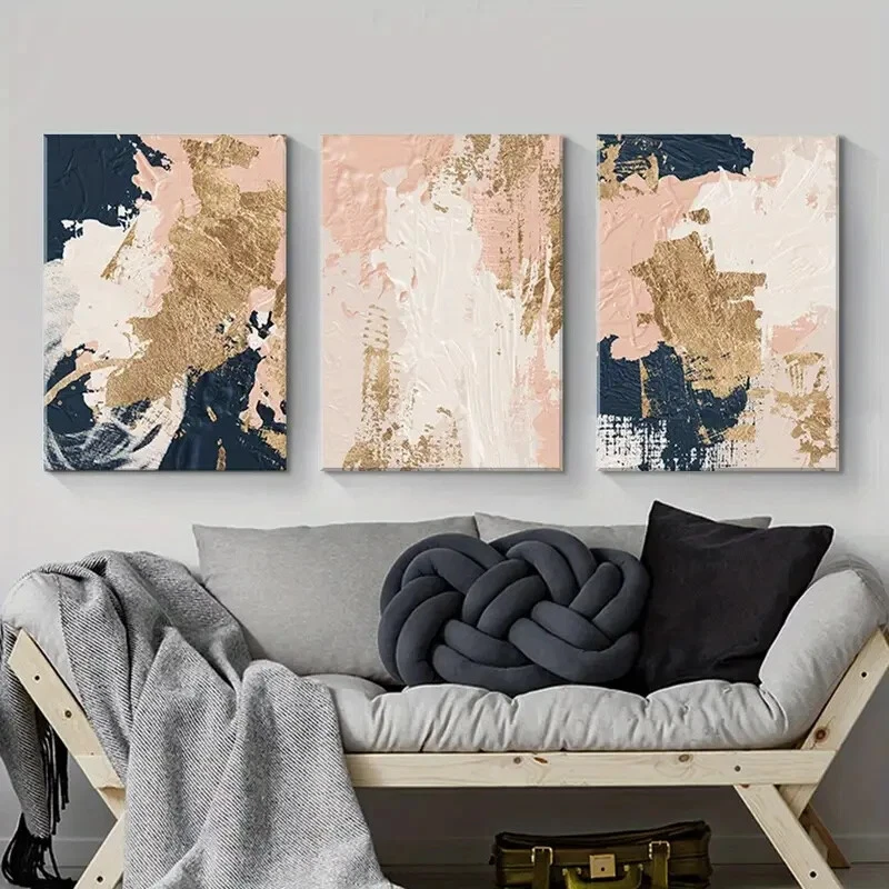 3pcs Blue Pink Golden Modern Wall Art Aesthetic Pictures Canvas Unframed