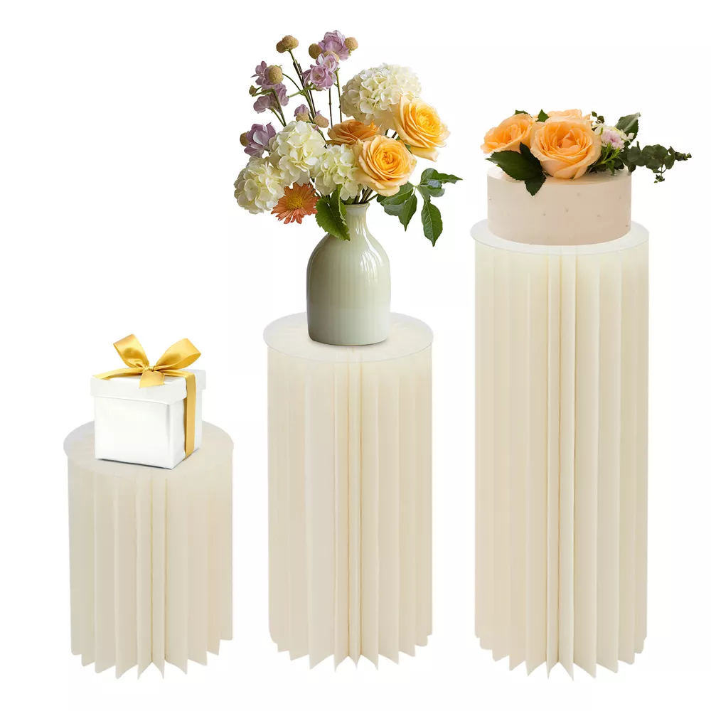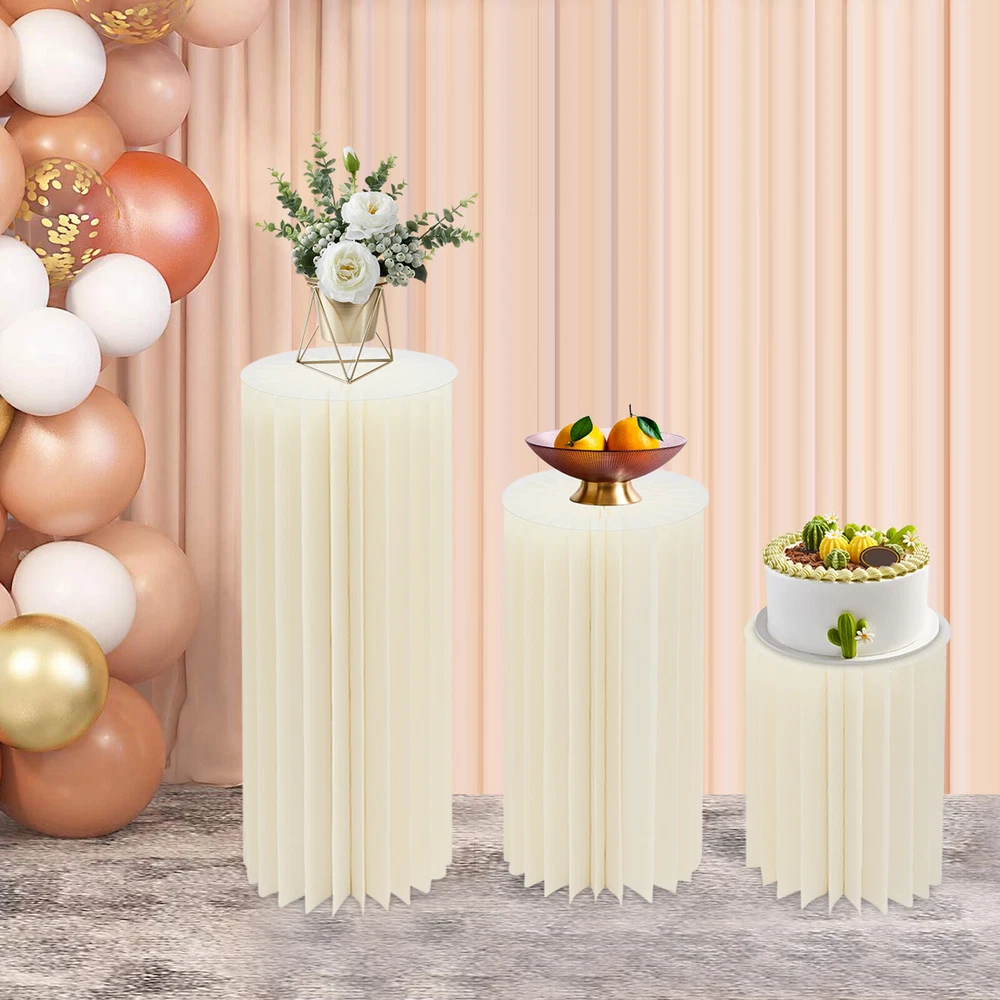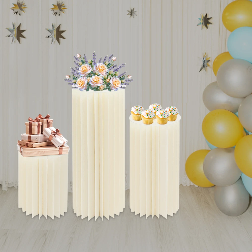 3pcs Foldable Cardboard Centerpiece Display Cylinder Flowers Stand Columns