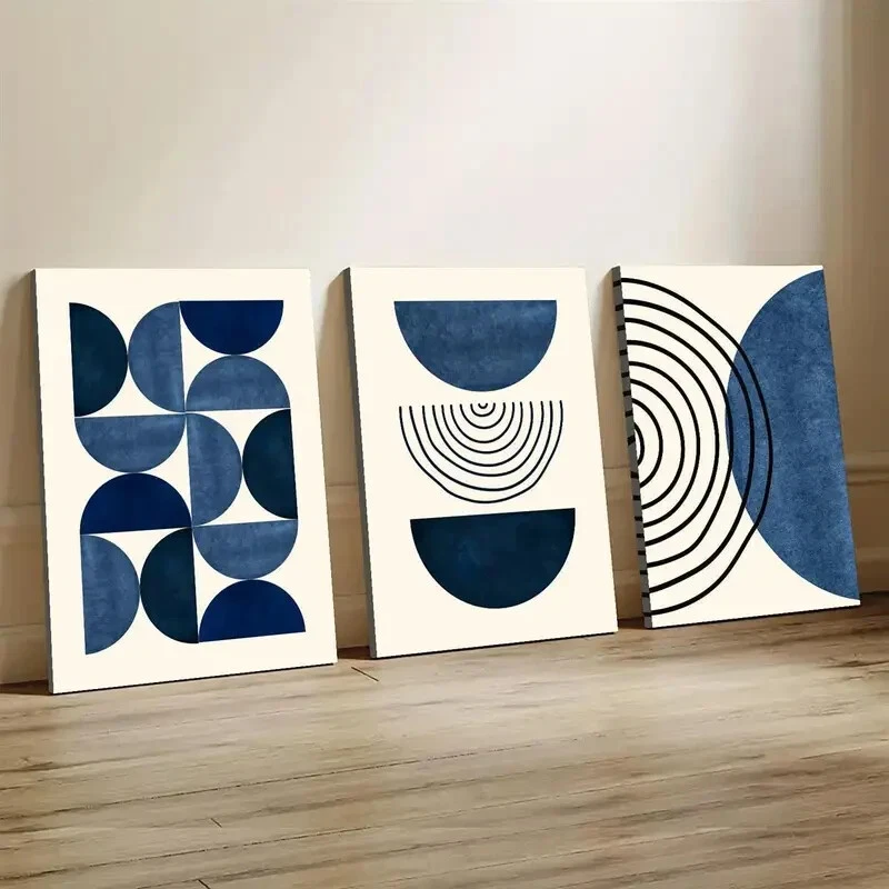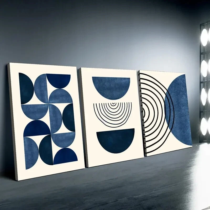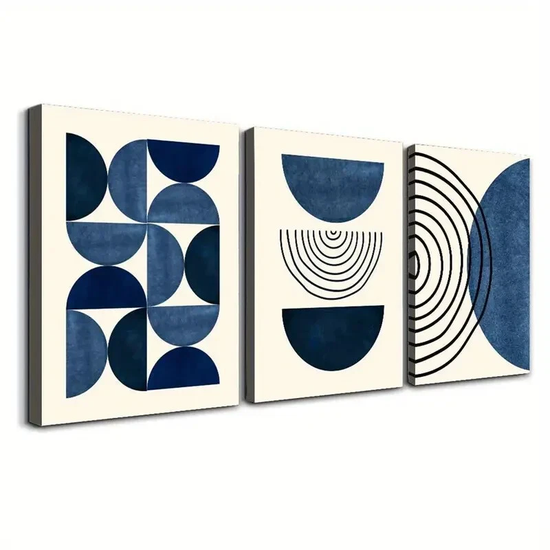 3pcs Mid Century Modern Art With Shapes Of Semi-Circle Canvas Unframed