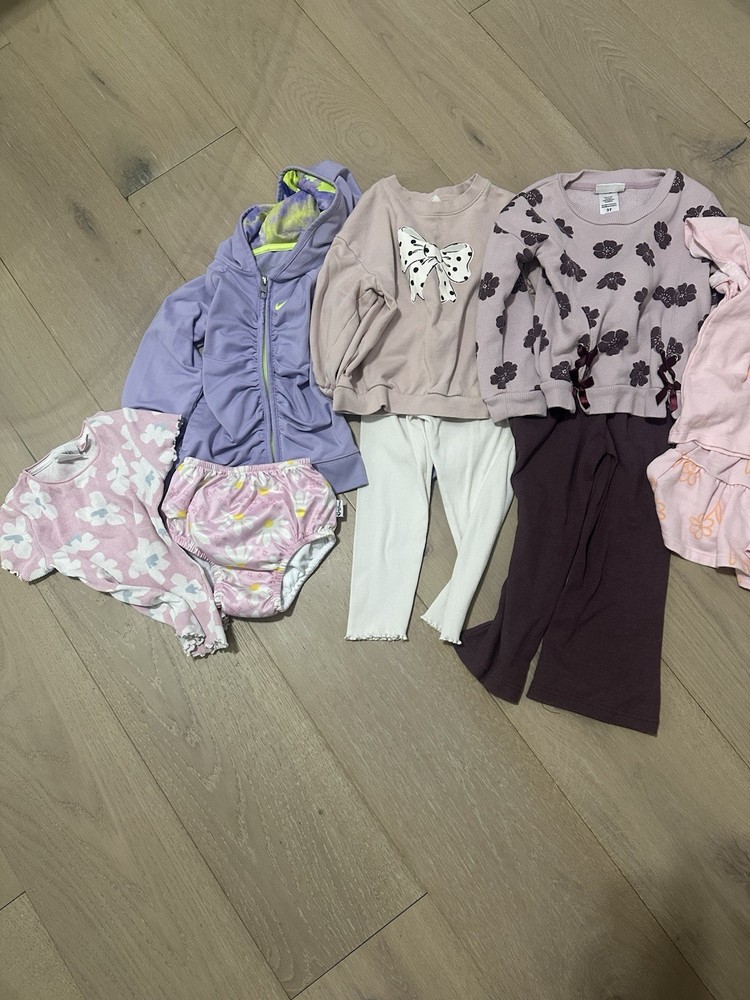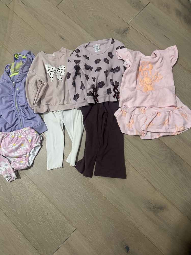 This product is a pre-owned bundle of clothes for a 3T girl, featuring a multicolor pants set from the brand Etsy. Made from a combination of polyester and cotton, this outfit/set is perfect for baby and toddler clothing. The vibrant colors and stylish design make it a great addition to any little girl's wardrobe, offering comfort and style in one versatile package.