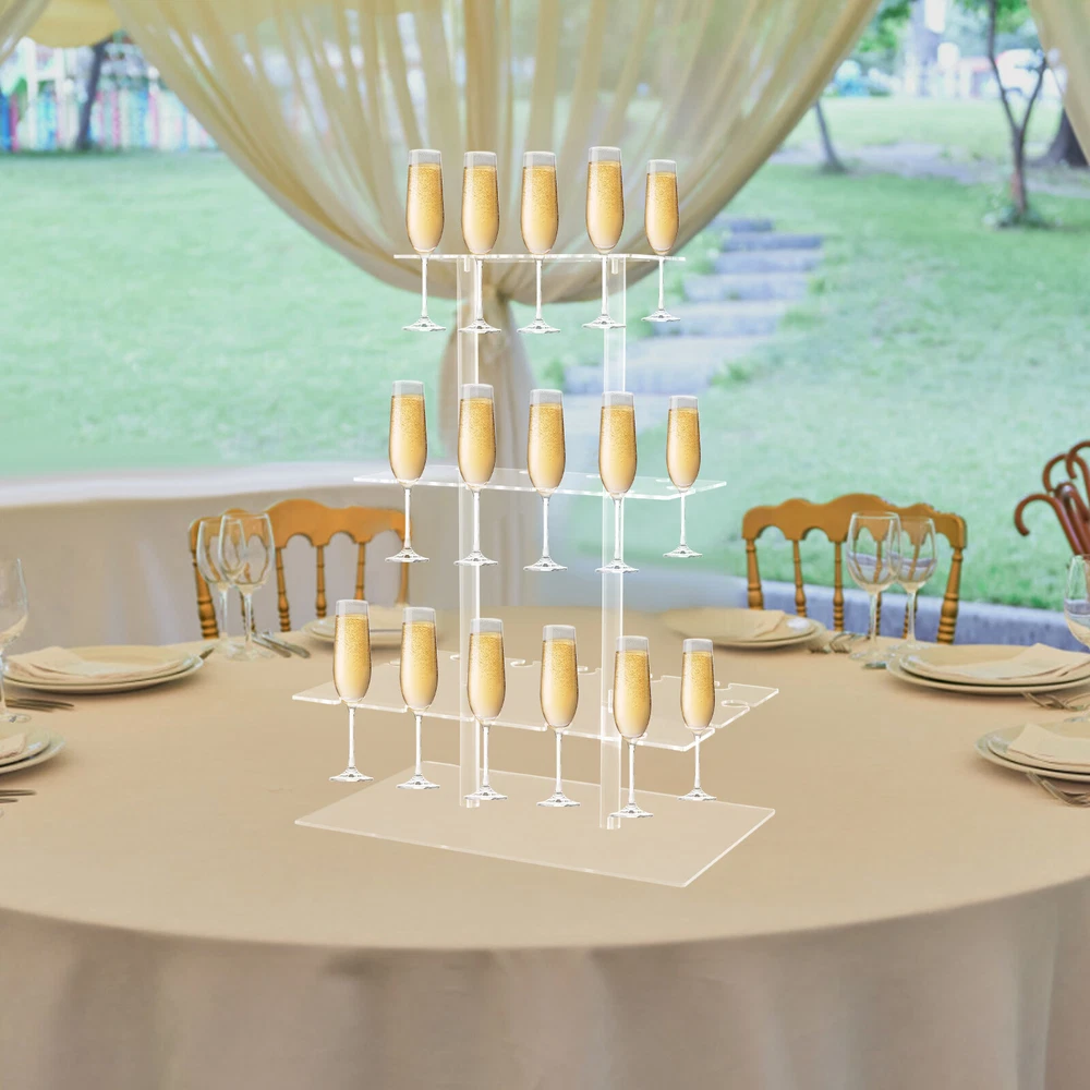 Specification Material: Acrylic, Hardware Process: Polishing, Automatic Lathe Machining Color: Clear Style: Modern Mount Type: Tabletop Number of Tiers: 3 Accommodate Number of Wine Glasses: 32 Suitable Wine Glass Diameter: 6.4-8cm/2.52-3.15 inches Product Size: 50*30*65cm/19.6*11.8*25.6in Package Size: 55*35*9.5cm/21.65*13.78*3.74in Gross Weight: 3.5kg/7.72lbs Net Weight: 3kg/6.61lbs Package Included 1 * 3-tier Champagne Tower Other Accessories for Assembly 3-tier Clear Acrylic Champagne Glasses Holder Display Stand Party Champagn Tower Description At your next important moment, let this 3-tier acrylic champagne tower be the focus. Its unique visual design not only adds fun but also allows you to adjust the number of tiers as needed to showcase your personality. Whether it's a romantic wedding ceremony or a cozy family gathering, this product can add a touch of color to your special day. Add it to your shopping cart now and make it a part of your beautiful memories! Key Features Good Materials : Safe acrylic and hardware that have been polished and processed by an automatic lathe are wear-resistant , not easily aged or deformed, and can be used safely for a long time. Spacious Space : The three-tier design provides you with 32 notched slots for placing champagne, where you can vertically place different types of glasses separately. Easy Accessing : The open design, Ω-shaped slots , and placement of slots make both access and placement convenient and safe. Visual Design : The highly clear acrylic makes the champagne (not included) placed on top look like it is suspended in the air, greatly enhancing the visual effect. Stable Support: The thickened double support column design and enlarged base provide stable support, allowing you to use it with peace of mind to place champagne. DIY Assembly: The detachable design allows you to freely choose the number of tiers to assemble, allowing you to adjust according to the actual situation. Fashionable Appearance: The straight design combined with clear acrylic showcases a simple and modern aesthetic, suitable for various occasions' decorative needs. Easy Clean-Up : The surface of the product is smooth and the structure is simple. You can easily use a soft cloth to wipe it clean. Details Protective Films : They can prevent the product from being scratched during transportation and maintain its smoothness. Fixing Screws : Tightening them can firmly connect the layers of the product together and maintain good stability. Application This product can be widely used in KTV, birthday parties, weddings, engagements, festivals, celebrations, commercial activities, and other scenarios, and is suitable for the wine glass with a diameter of 2.52-3.15 inches. It is not limited to just champagne glasses and is also ideal for various stemware glass displays, such as cocktails, wine glasses, and martinis. Specification Material: Acrylic, Hardware Process: Polishing, Automatic Lathe Machining Color: Clear Style: Modern Mount Type: Tabletop Number of Tiers: 3 Accommodate Number of Wine Glasses: 32 Suitable Wine Glass Diameter: 6.4-8cm/2.52-3.15 inches Product Size: 50*30*65cm/19.6*11.8*25.6in Package Size: 55*35*9.5cm/21.65*13.78*3.74in Gross Weight: 3.5kg/7.72lbs Net Weight: 3kg/6.61lbs Package Included 1 * 3-tier Champagne Tower Other Accessories for Assembly Notes Please note that this product does not include other items such as wine glasses. Please allow the slight color difference caused by the shooting light and 1-3cm error due to manual measurement, and make sure you do not mind before ordering. Payment Delivery details Terms of sales About us Contact us Payment We accept ebay payment 。 Fees such as import duties, taxes are not included in the item price or shipping costs. These charges are the buyer's responsibility. Delivery details Shipping: 2-9 working days to: USA Terms of sales We maintain high standards of excellence and strive for hundred percent customer satisfaction. Feedback is very important to us. We hope that you contact us immediately before you give neutral or negative feedback, so that we can address your concerns. It is impossible to address issues if we do not know about them! About us Your satis faction is our ultimate goal. We work hard to earn your trust and future business. Our certified technicians have tested each item before shipping. The unit comes with 1 year limited warranty on all manufacturing defects. a) If you receive a defective item, you may return it or ask for a discount. Please contact us within 14 days after you receive the package. b) What you returned must be intact and in its original packaging as re? u. Customer is responsible for shipping costs of the returned item. c) We will cover the cost of shipping back t with the shipping rate indicated in the registration page. We will send you a new unit or refund the full payment you paid. Thank you. Contact us Business Hour Business Hour: Monday To Friday: 8:30 AM to 5:00 PM (Beijing China time) Due to time zones, our reply to your questions may not be immediately. But within above working time, we will reply your email within 24 hours. If it's non-workdays, please kindly be patient and wait till Monday. Please contact us with ebay message. Please feel free to contact us if you have any questions. Monday To Friday: 8:30 AM to 5:00 PM (Beijing China time) Due to time zones, our reply to your questions may not be immediately. But within above working time, we will reply your email within 24 hours. If it's non-workdays, please kindly be patient and wait till Monday. Please contact us with ebay message. Please feel free to contact us if you have any questions.