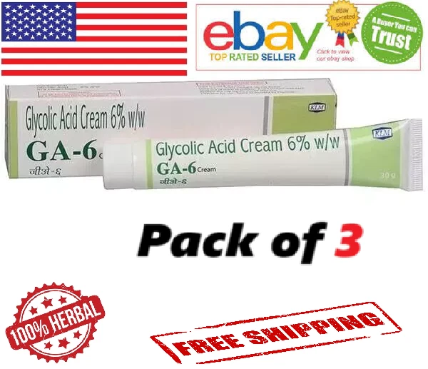 Pack of 3 100% Natural GA-6 Glycolic Acid 6% Cream for all Skin Types - 30gm (Free Ship)