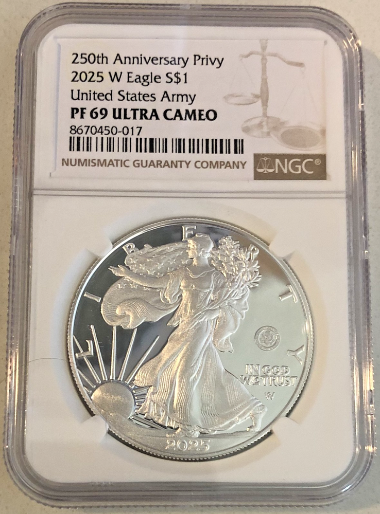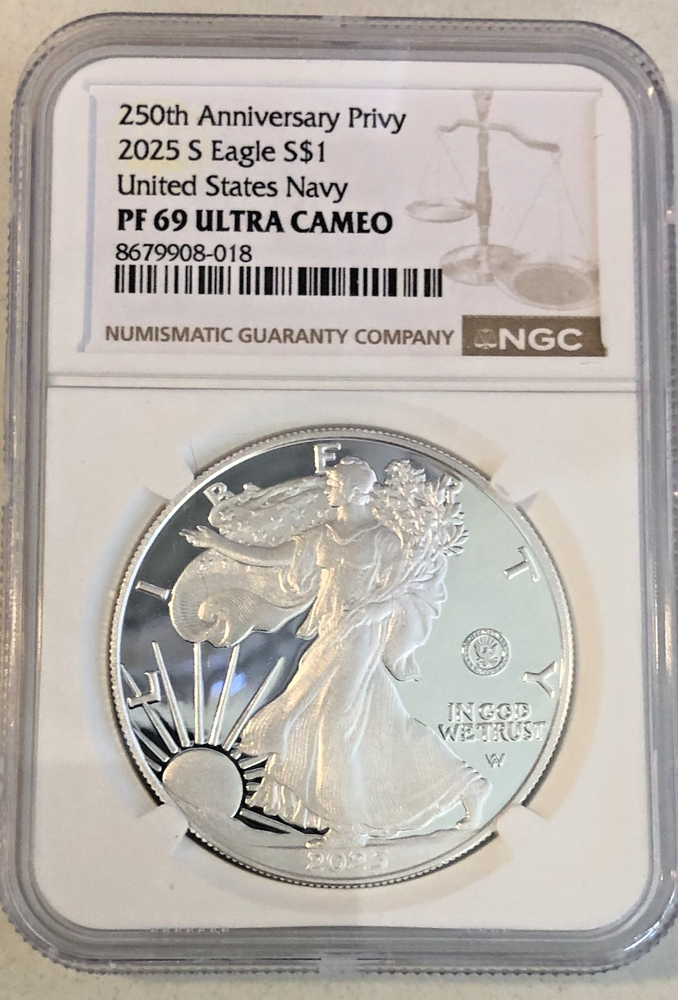 3x 2025 P W S Proof $1 Silver Eagle, MARINE Corps, NAVY, ARMY Privy NGC PF69 UC 250th Anniversary