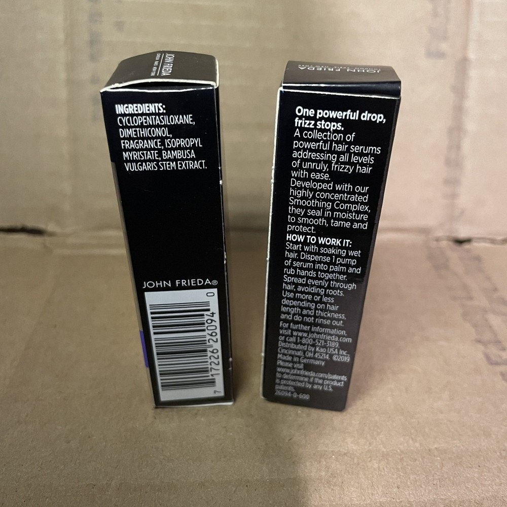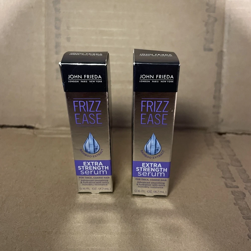 John Frieda Frizz Ease Extra Strength Serum - 2 Pack This listing includes two (2) travel-sized boxes of John Frieda Frizz Ease Extra Strength Serum. Specifically formulated for thick and coarse hair types, this serum utilizes bamboo extract to provide advanced smoothing and exceptional humidity resistance. The compact 4.7ml size is perfect for travel, gym bags, or trying out the product before committing to a full size. Brand: John Frieda Product: Frizz Ease Extra Strength Serum Size: 0.16 FL OZ (4.7 mL) per box Quantity: Set of 2 Benefits: Frizz control, humidity protection, and smoothing for thick hair