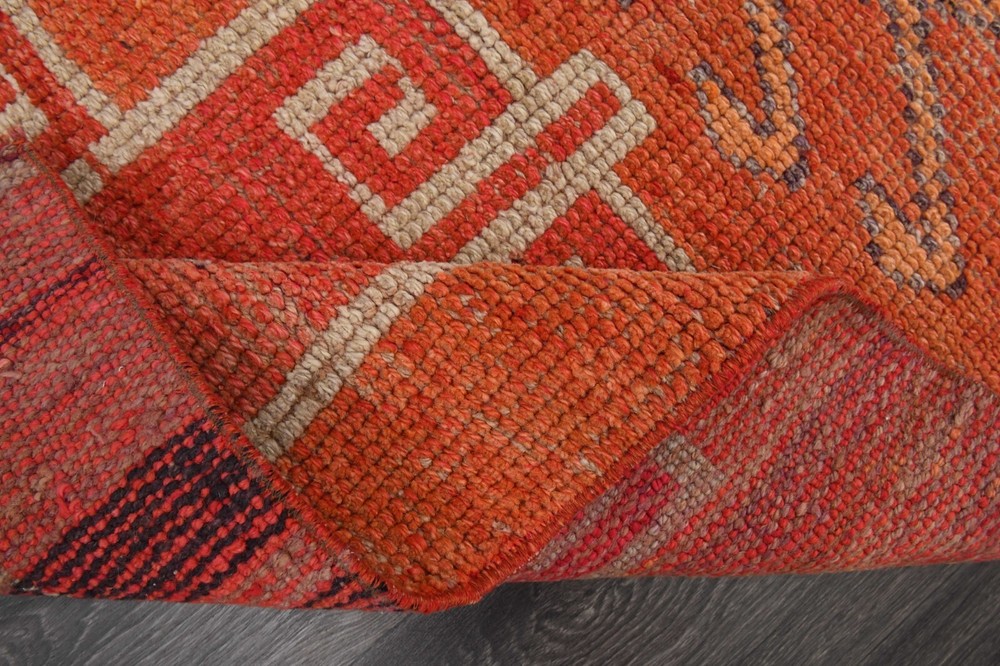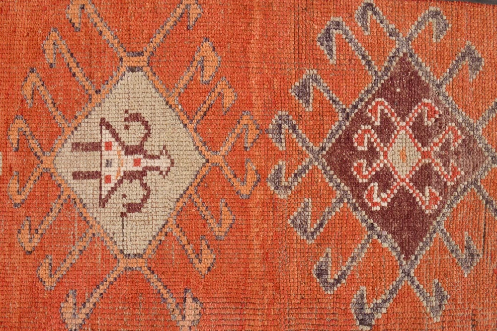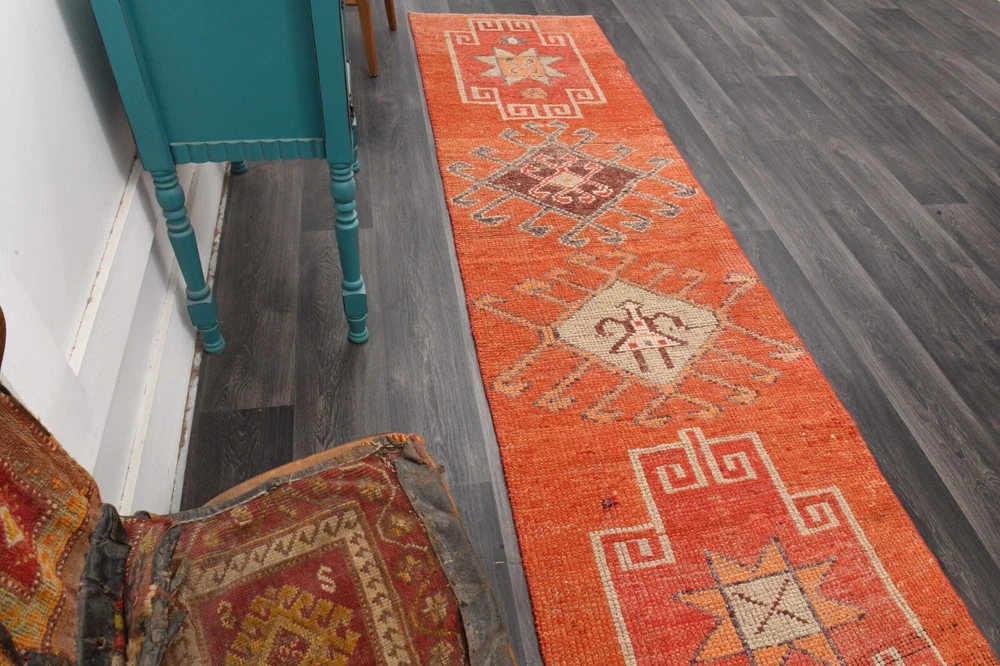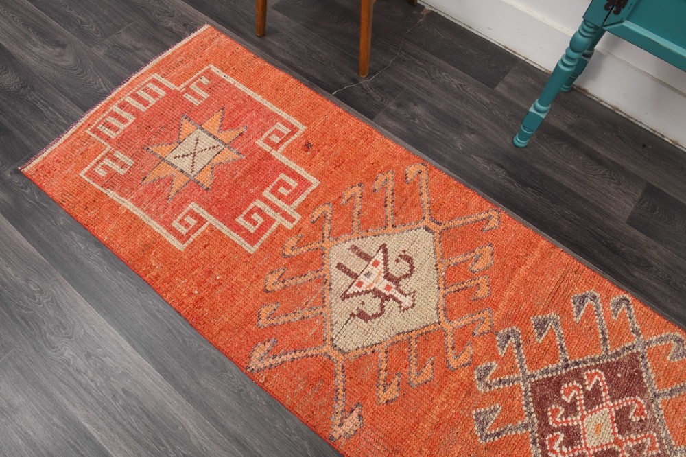 Pile Height: 0.25 in Culture: Turkish Theme: 1960s & 1970s Size: 3x10 ft Color: Orange Item Width: 3 ft Regional Design: Turkish Brand: Decor Style: Tribal Pile Type: Normal Pattern: Geometric Features: Easy to Clean, Eco Friendly, Hand-Knotted Weave: Hand-Knotted Room: Hallway, Kitchen Handmade: Yes Era: Mid 20th Century (1941-1969) Production Technique: Woven (classic) Country/Region of Manufacture: Tรผrkiye Time Period Manufactured: 1960-1969 Shape: Rectangle Care Instructions: Professional Cleaning Recommended Department: Unisex Baby & Toddler, Boys, Girls, Unisex Kids, Teens, Adult Type: Runner Item Length: 10 ft Material: Wool