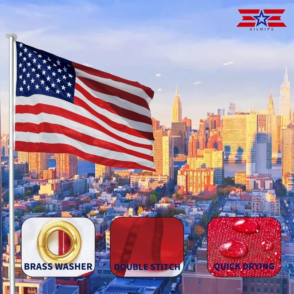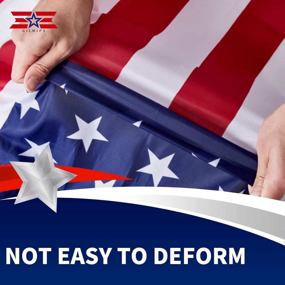 American Flag 3x5 2pk HIGH QUALITY MATERIALS: Our American flag 3x5 is made of high quality polyester, ensuring durability and long-term use. BRIGHT & FADE-RESISTANT COLORS: The colors of our 3x5 USA flags are bright and fade-resistant to maintain their vibrant appearance even when exposed to sunlight. Our US flags are suitable for all weather. FITTINGS & STITCHING TECHNOLOGY: The American flags are equipped with durable brass grommets that can be easily installed on the flagpole and ensure they stay securely in place, and the edges are double stitched for added strength and durability, ensuring they will hold up even in harsh weather can remain perfect condition. SIZE & USES: Our American flags measure 3x5 feet Made in China and can be hung on front porches, houses, indoor and outdoor walls, gates, classrooms and more to show your patriotism. Additionally, it can be used as an outdoor garden flag, a memorial US flag for family and friends, and it also can be used for many events such as Independence Day, Christmas and New Year. The lightweight design allows the USA flag to fly in the breeze. SPECIAL PATRIOTIC GIFT: Our 3x5 American flags make great gifts for your loved ones, friends, co-workers, veterans, patriotic families and more. We make sure to provide you with our sturdy flags, so you can easily express your love for this great country.