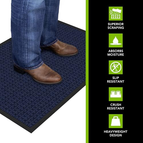 This mat is a lifesaver for high-traffic entryways! The thick, crush-resistant surface traps dirt and moisture like a champ, and the non-slip rubber backing keeps it firmly in place. It dries fast and holds up to daily wear without flattening. Perfect for keeping floors clean and dry—love that it's made in the USA too! Worth every penny for the durability and performance.