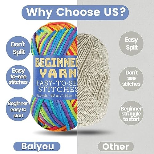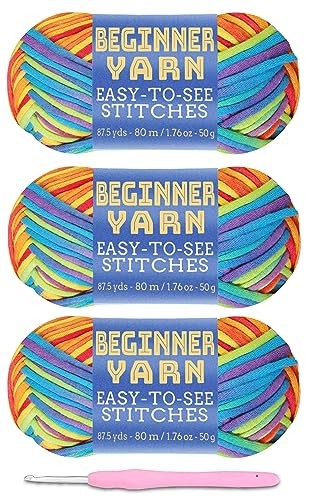 1. This rainbow yarn is perfect for beginners—soft, vibrant, and easy to work with! The stitches are clear, and the cotton-nylon blend is smooth yet durable. Love that it's machine washable, and the colors stay bright. Fast shipping and great customer service make this a must-buy for new crafters!