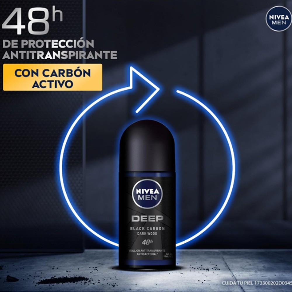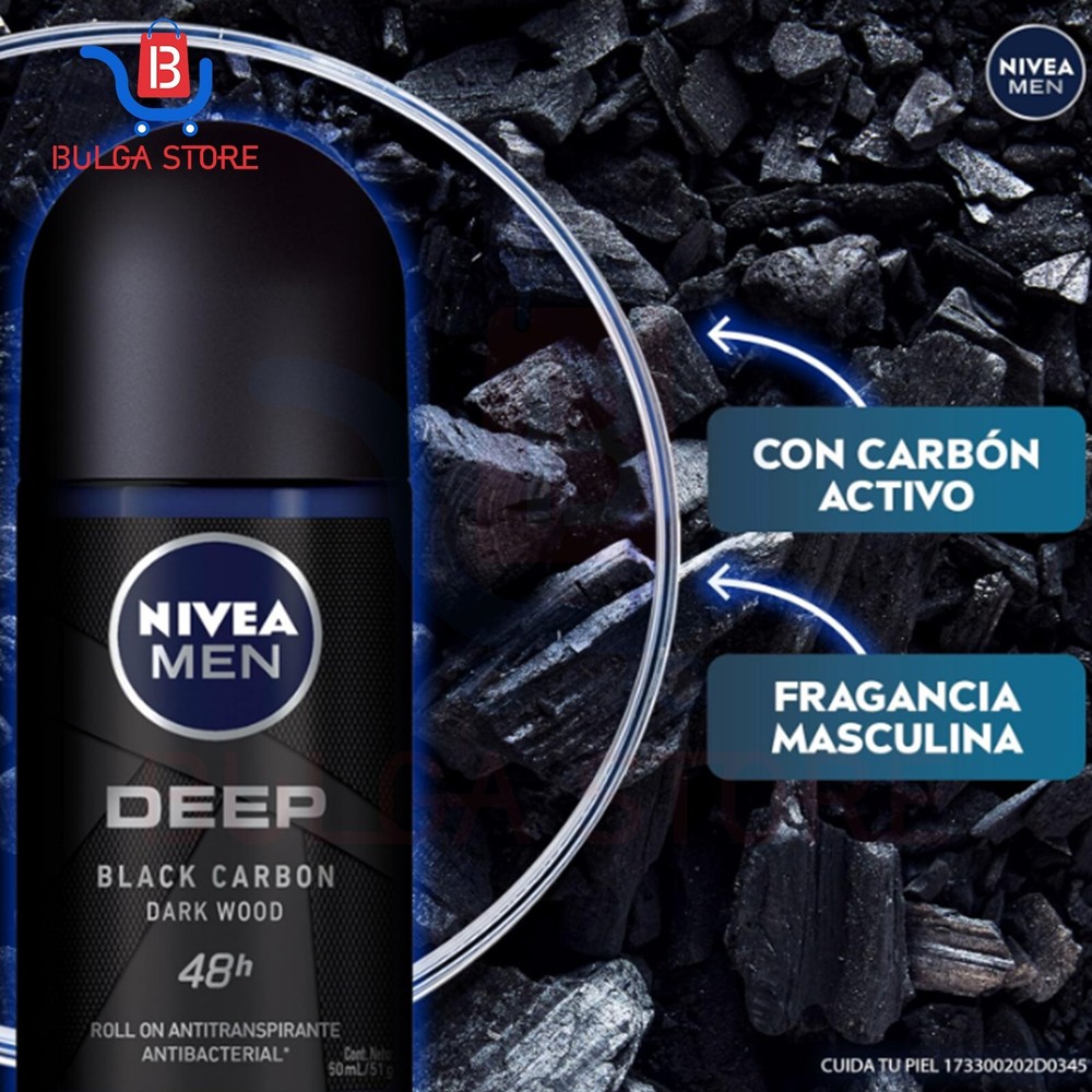 3x50ml Nivea Men Deep Black Carbon Dark Wood Roll-On Deodorant with Active Charcoal