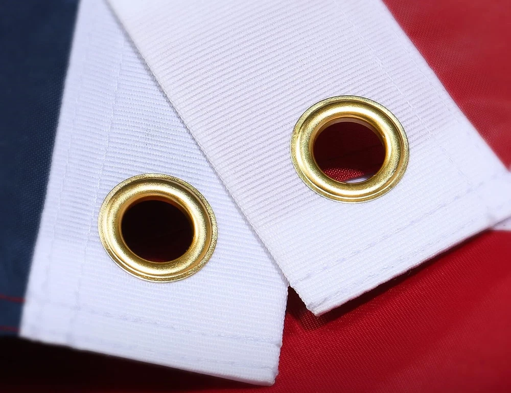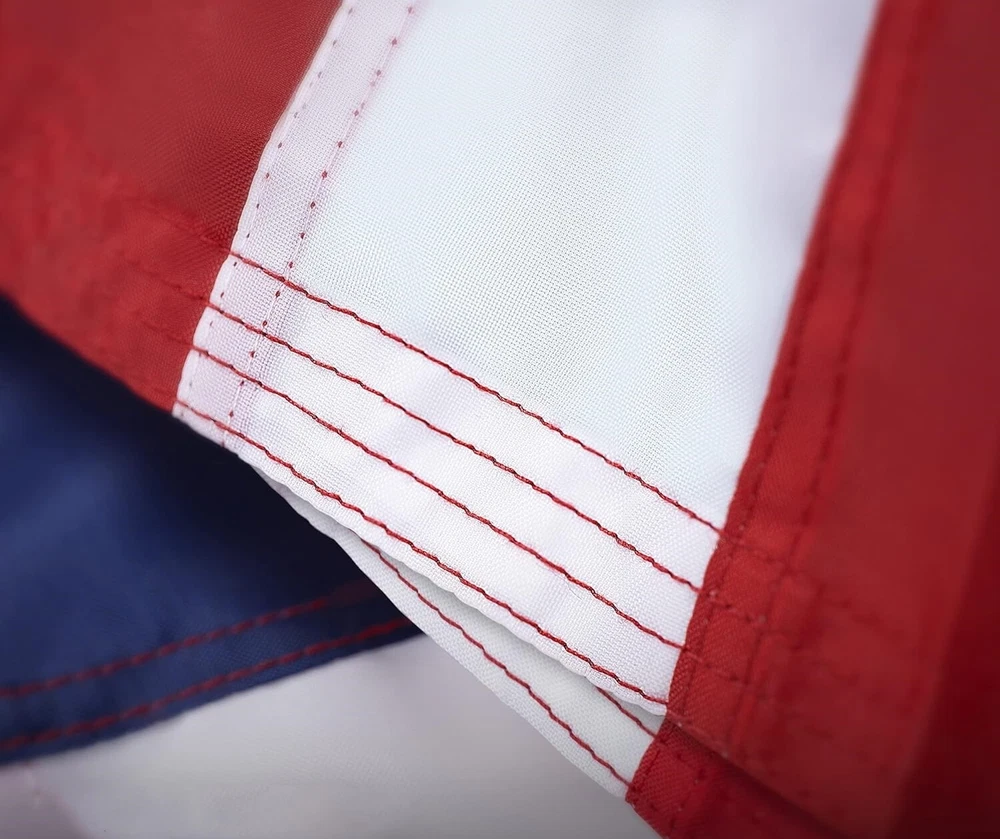 Printing was crisp and colors were true. Amazing. Excellent value. Arrived packaged excellent condition. Upon inspection next time would request additional third row of stitches along perimeter and around grommets. Due to 5x8 size of flag in windy conditions. That’s my fault not the manufacturer. Excellent job.