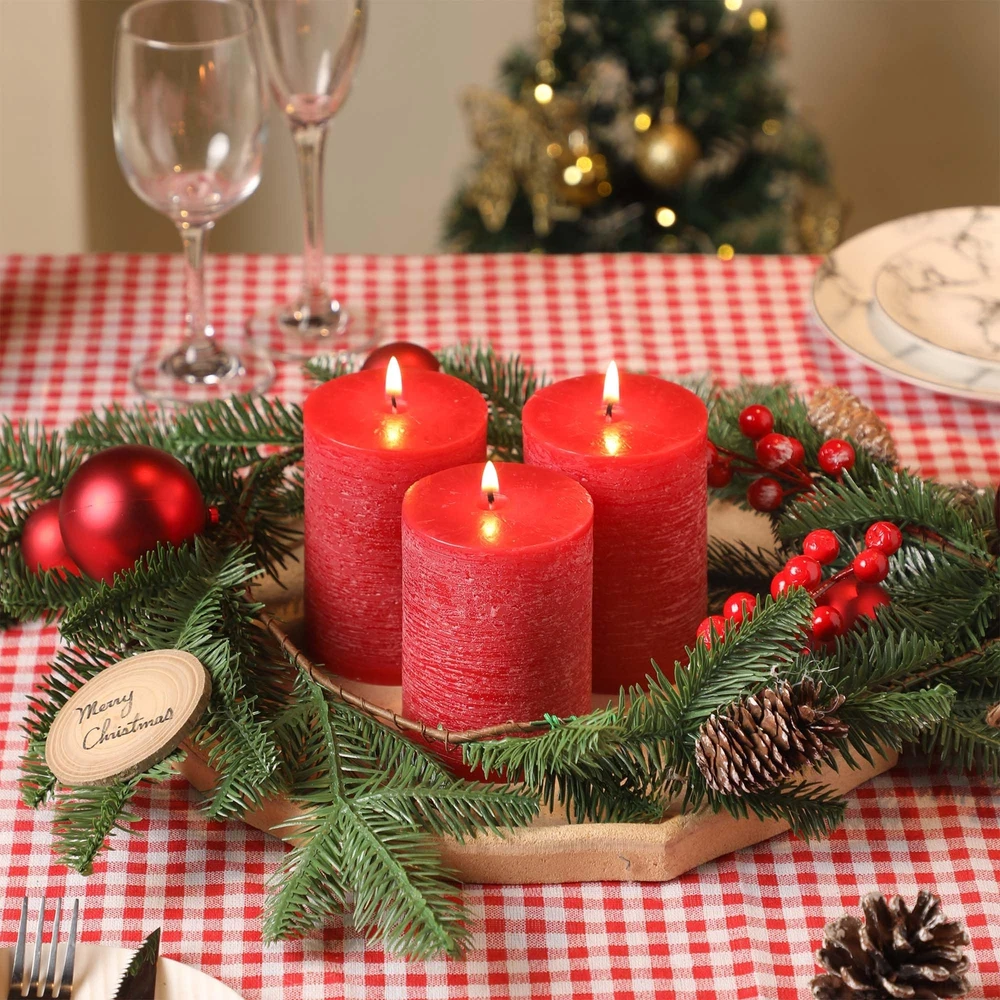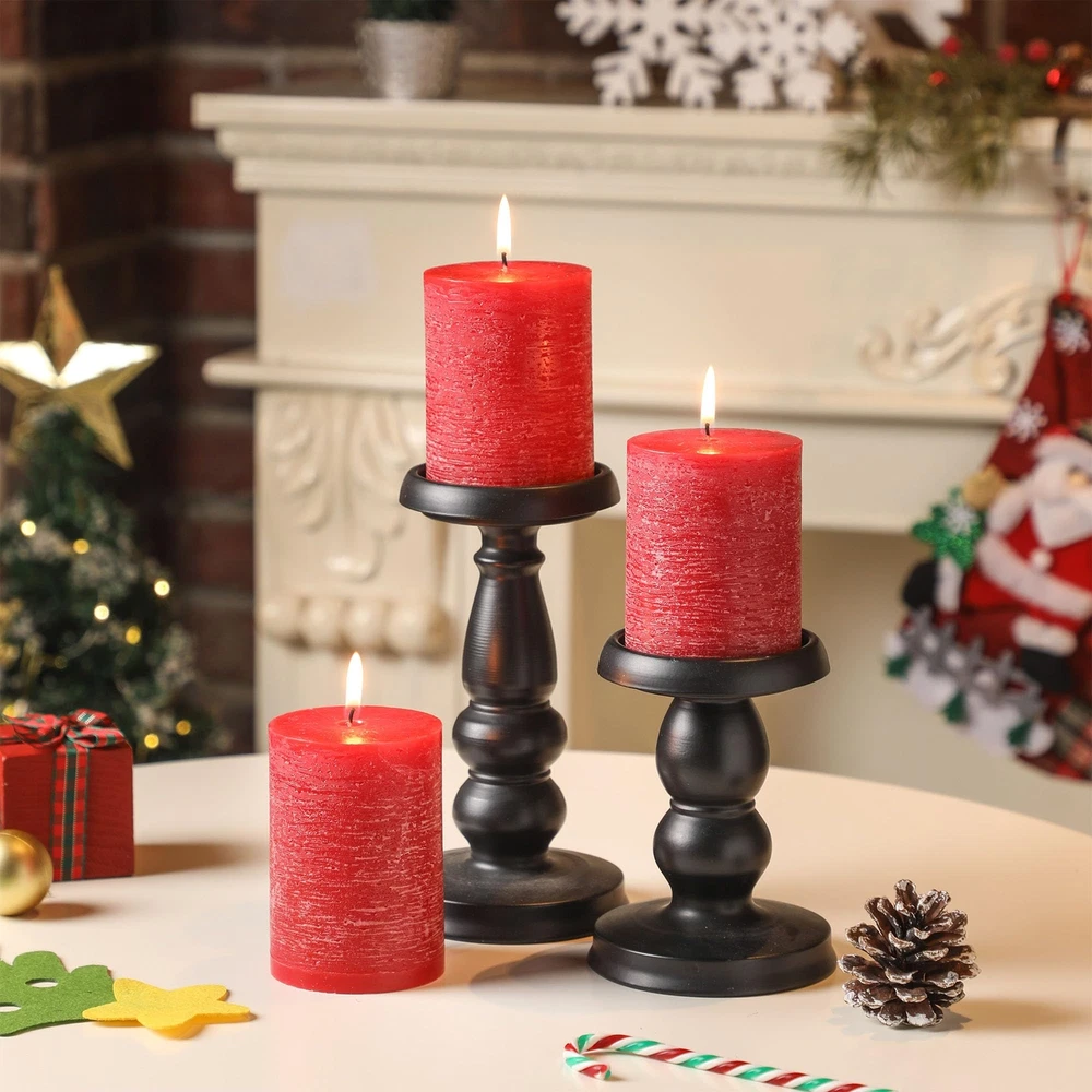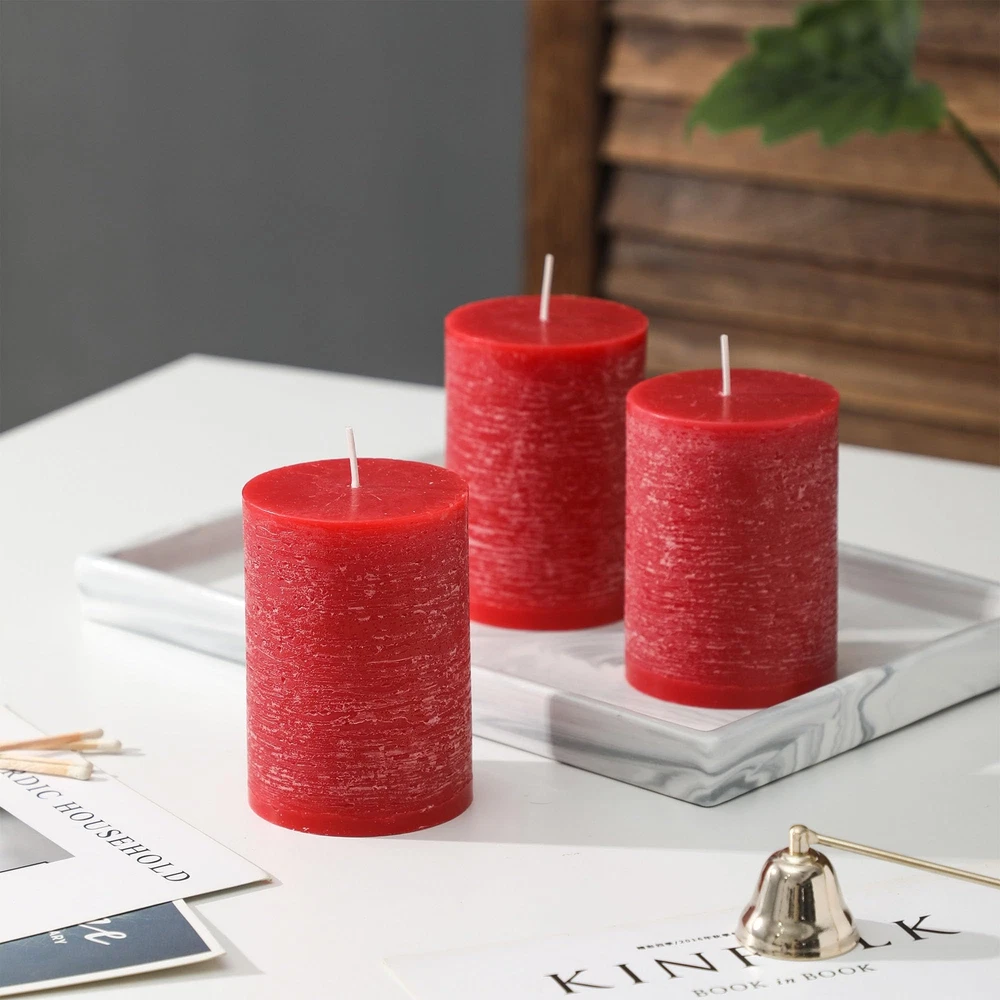 3x6 Inch Red Pillar Candles Set of 3, Christmas Candles Unscented Red Pillar ...