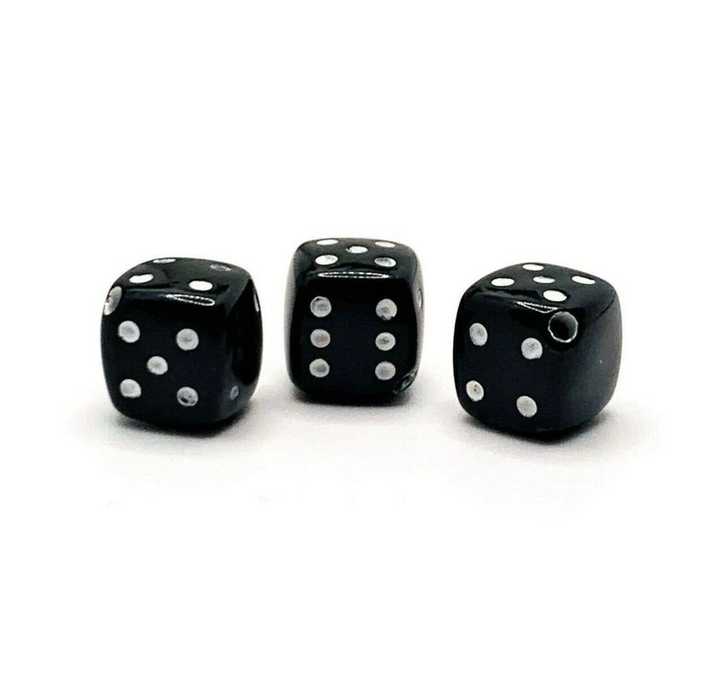 Black Dice Charms These beads are the perfect addition to any jewelry making project or as a unique accessory on their own. The 3D design of the black dice adds a fun and playful touch to any piece, while the high-quality materials ensure durability and longevity. 9 x 9 mm 1.3 mm hole Black acrylic Nickel, lead, and cadmium free! Hand-packaged to ensure only the best quality! Perfect for necklaces, bracelets, and other DIY creations! Shipping Fast and free shipping within the USA! Tracking included! All orders shipped out within 24 hours of payment (aside from holidays and weekends). Return Policy Customer satisfaction is our priority! Returns, refunds, and replacements available for all unused items within 30 days. Contact us for any questions, comments, or concerns!