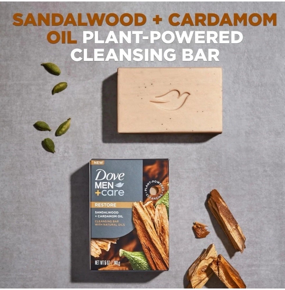 4 Bars DOVE Men + Care SOAP Restore Sandalwood Cardamon Oil Cleansing Bar Soaps.