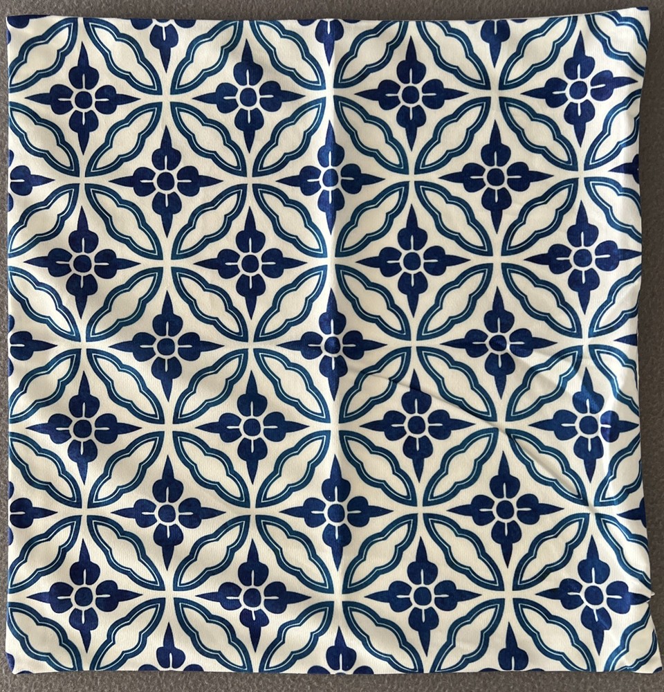 Set of 4 Blue & White Throw Pillow Covers 18"x18" Geometric print with zip Covers only 4 Individual prints