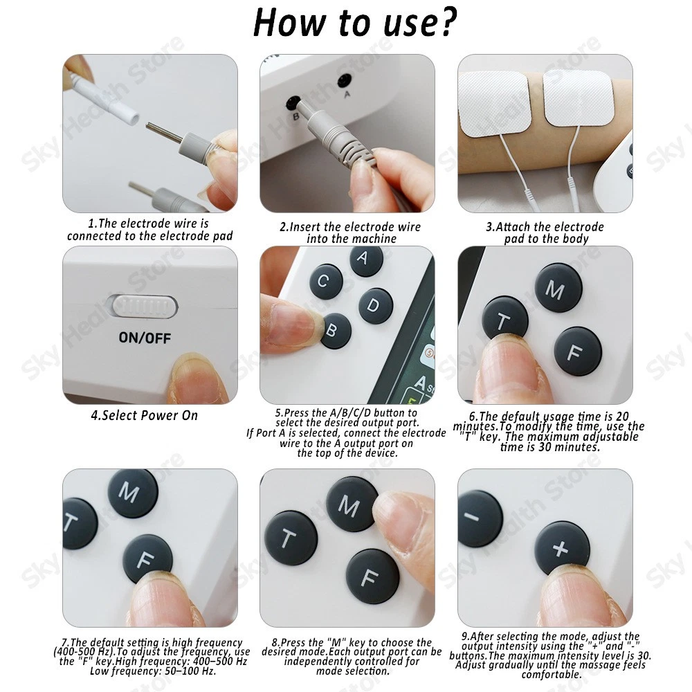 ●Experience fast, drug-free pain relief and effective muscle recovery with this versatile four-channel TENS/EMS muscle stimulator. Designed for home use, this rechargeable device combines transcutaneous electrical nerve stimulation (TENS) and electrical muscle stimulation (EMS) technology to help relieve chronic pain, relax sore muscles, and promote faster recovery after exercise. ●With 15 preset massage modes, you can choose from a variety of massage techniques, including kneading, massage, cupping, acupuncture, and more, to find the therapy that best suits your needs. The device features 30 massage intensities, a large backlit LCD display allows for easy customization, and a four-channel system allows you to treat four areas of your body simultaneously. ●The built-in rechargeable lithium battery provides hours of continuous therapy without the need for battery replacement, making it suitable for use at home, in the office, or on the go. Product List: Massager + 8pcs (4 pairs) electrode pads: ●Massager *1 ●Electrode pads *8 (4 pairs) ●Electrode cables *4 ●USB charging cable *1 ●English instruction manual *1 Massager + 16pcs (8 pairs) electrode pads: ●Massager *1 ●Electrode pads *16pcs (8 pairs) ●Electrode cables *4 ●USB charging cable *1 ●English instruction manual *1 On Sep 30, 2025 at 02:53:52 PDT, seller added the following information: