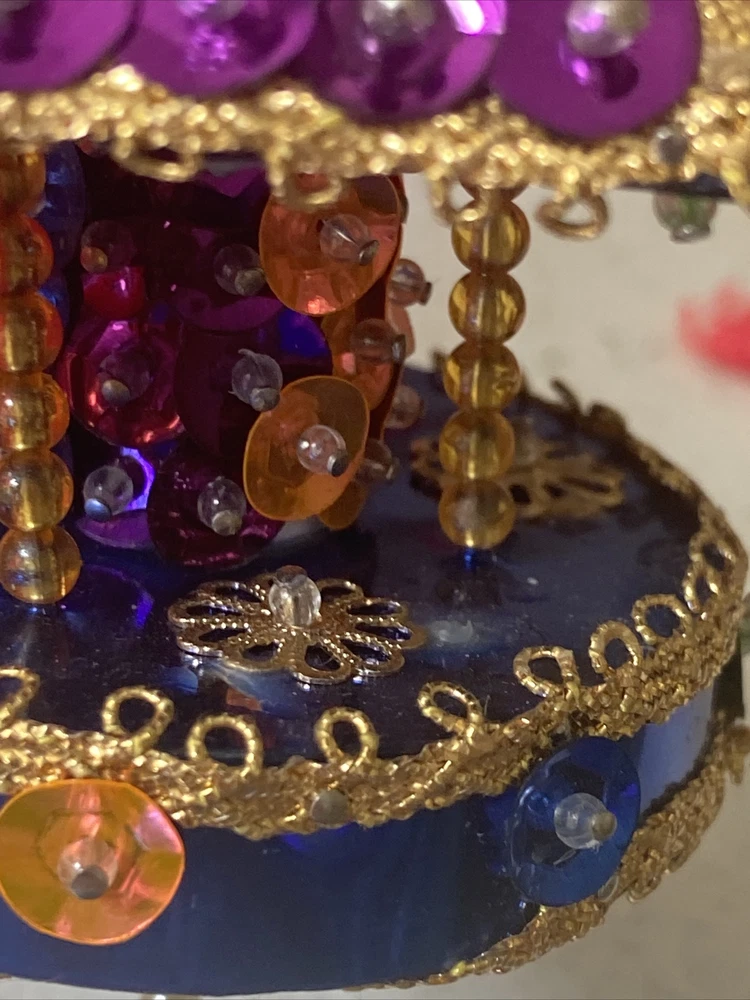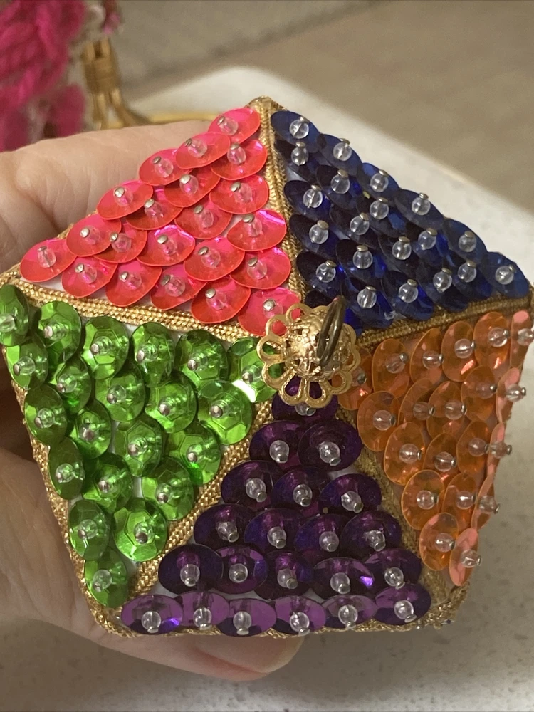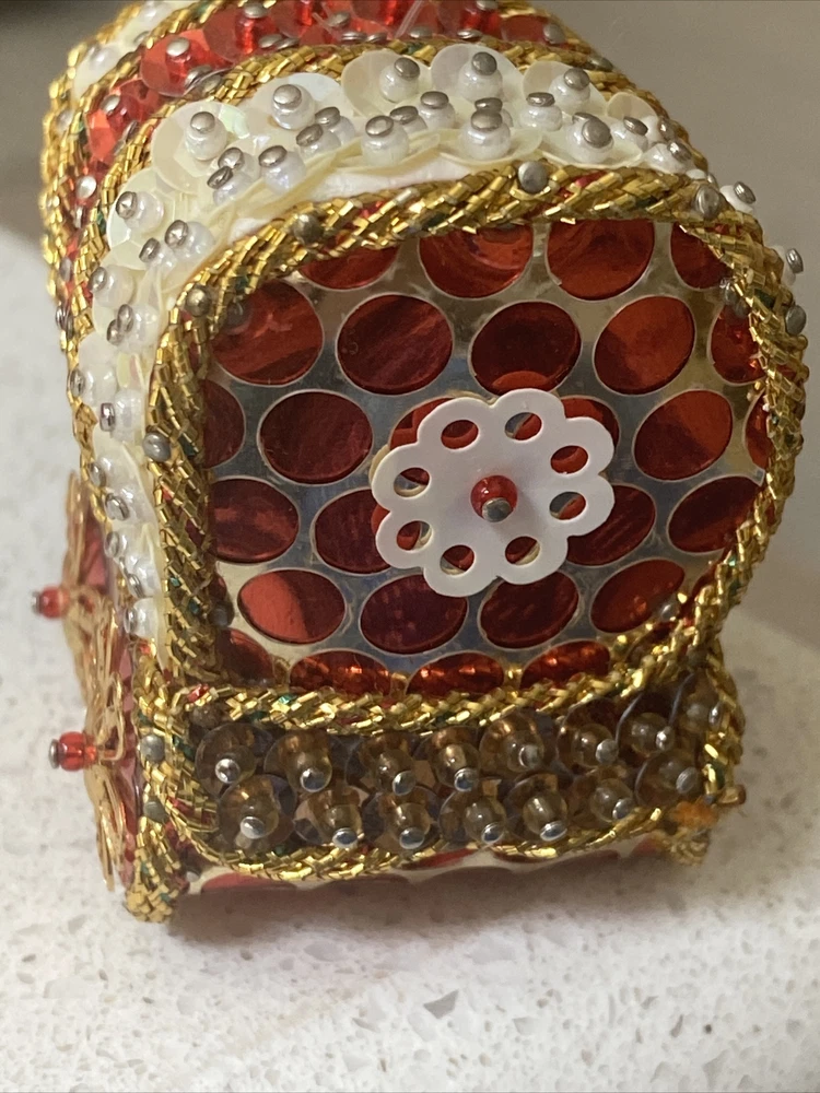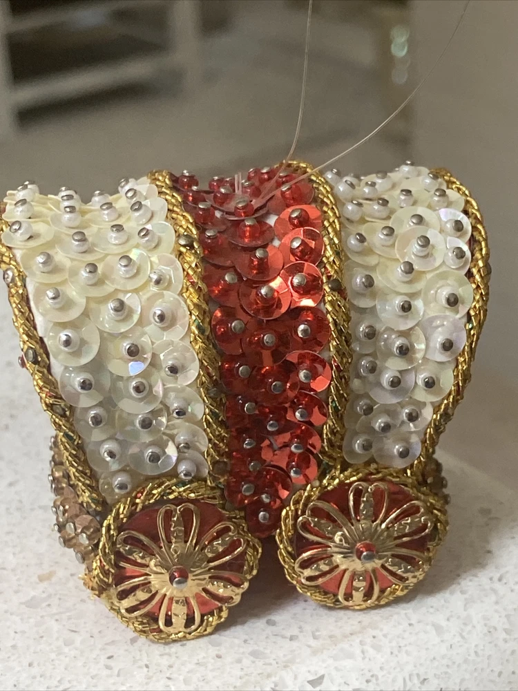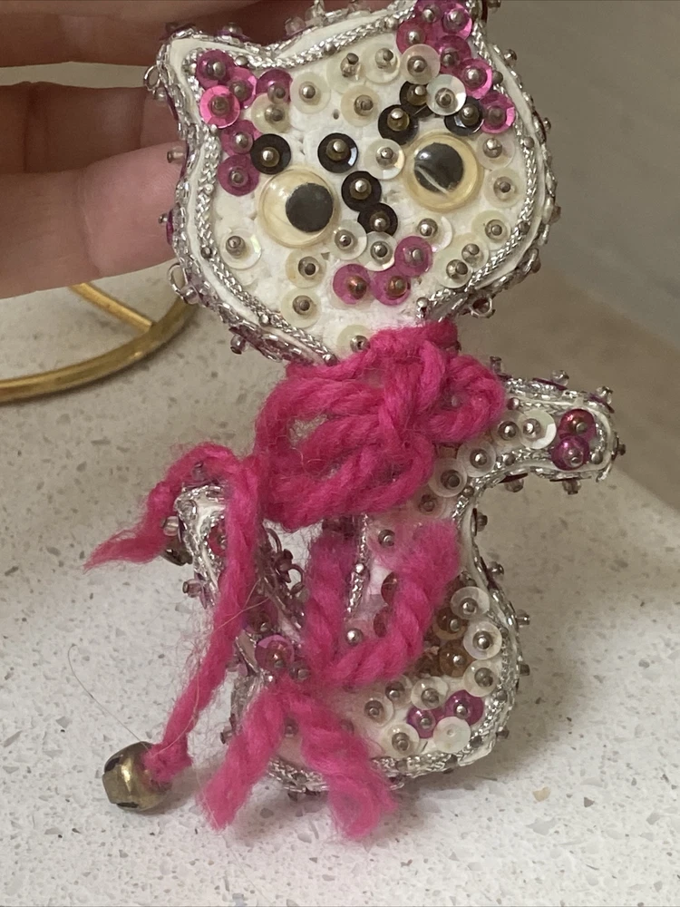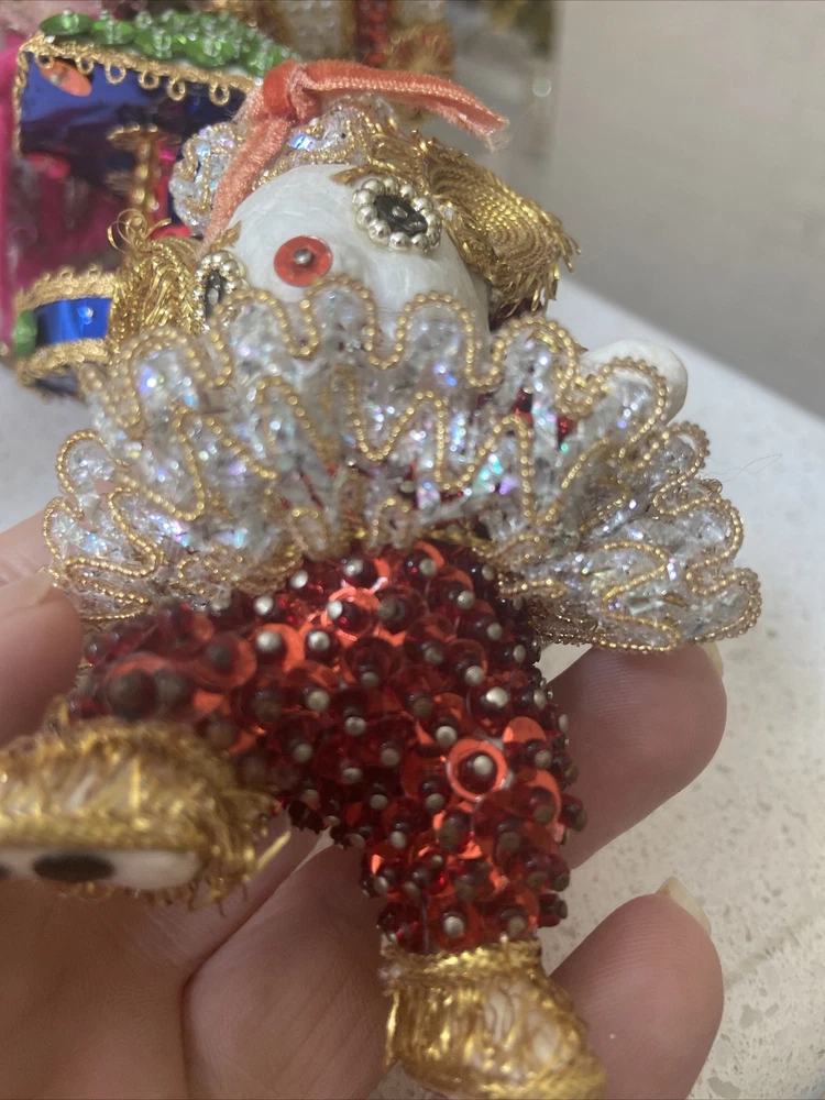 Christmas Beaded Sequin And Push Pin Ornaments Handmade Lot Of 4. For really cute ornaments I especially love the bear that is my favorite. The detail on this beautiful little ornament is incredible. They are a mixed lot sold as is they are in vintage condition. Please note the carousel the two pink horses need to be glued back on, and it will still be missing one of them back in the day they were for now we’re down to one with two that need to be reattached.