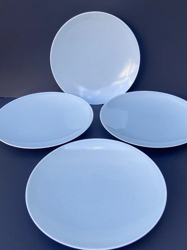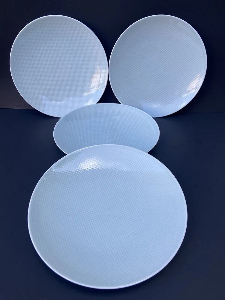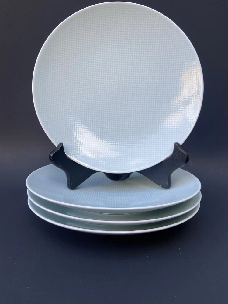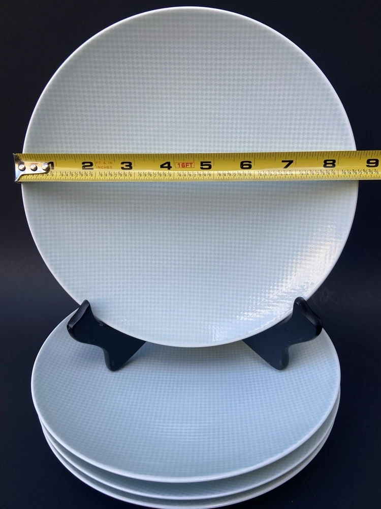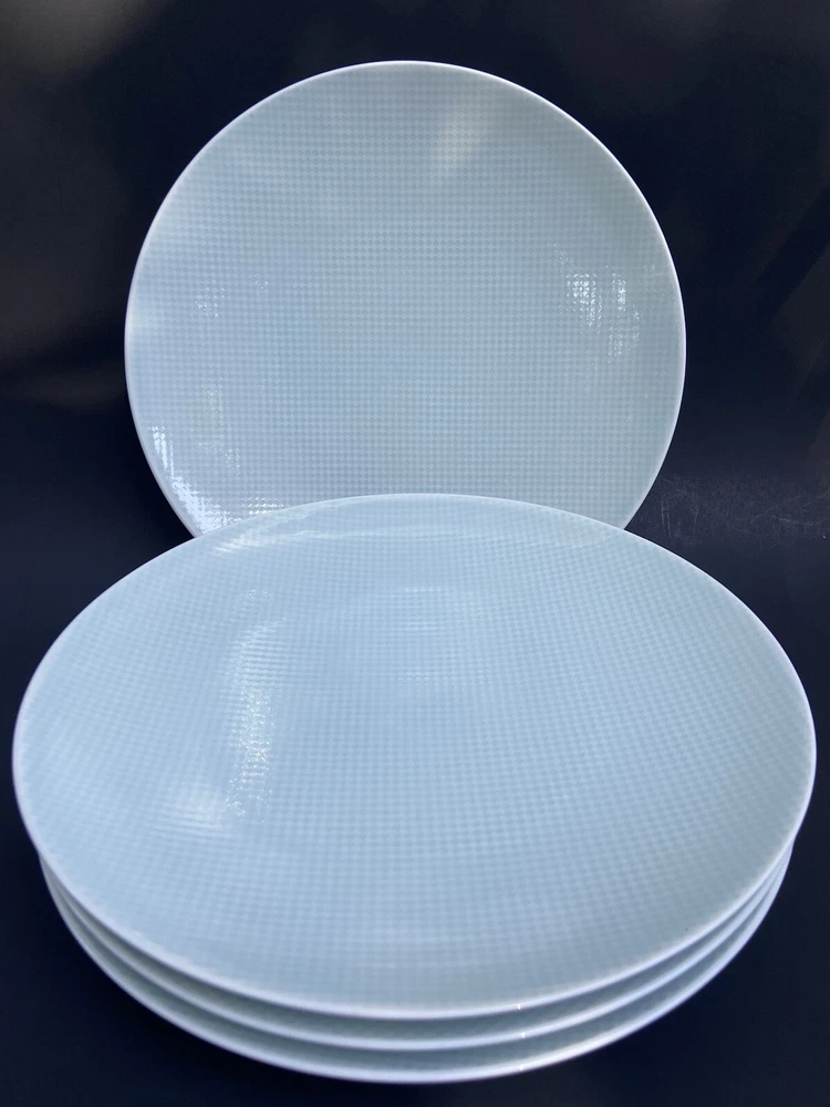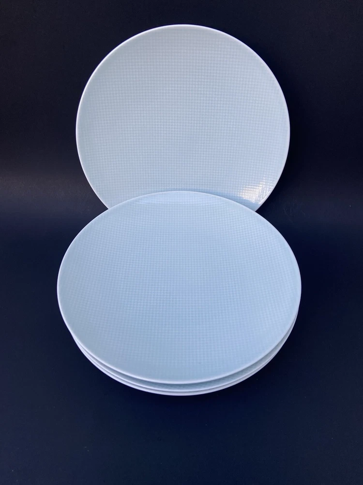4 Crate & Barrel Salad Plate Nikko Reflections Aqua Squares Made in Japan 8.5” Light faint blue color a bit difficult to capture in the photo. All are preowned with normal wear such as surface scratches from utensils, cleaning and stacking. No chips , no cracks nor repairs. The pictures were taken in both natural daylight and artificial light to capture the closest actual shade of color; however and in person, the item might be slightly brighter or darker than the photos due to camera’s autofocusing features. The set weighs approximately 4 pounds and 6 ounces without packaging material. Will package with great care and thank you kindly for your consideration. REASONABLE SHIPPING: Calculated shipping: Weight and distance based shipping via USPS Ground Advantage domestically USA from South Florida. USPS Ground Advantage is lowest shipping cost. Estimated delivery of 2-8 business days. Shipping costs is based on item(s) weight including packaging materials and the distance from the seller’s zip code to the buyer’s zip code. Buyers whose shipping address/zip code is in the East coast of USA tend to have higher shipping costs as distant is longer from seller’s South Florida zip code. Ships globally via Ebay International Shipping Delivery.