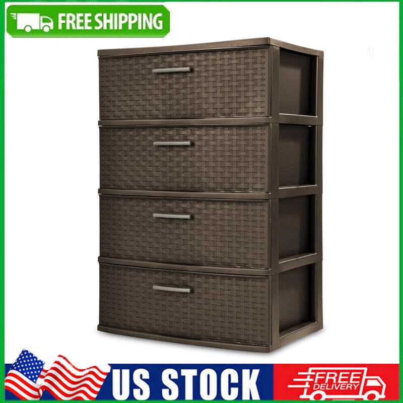 4 Drawer Dresser Wide Weave Storage Tower Chest Cabinet Organizer Box Espresso