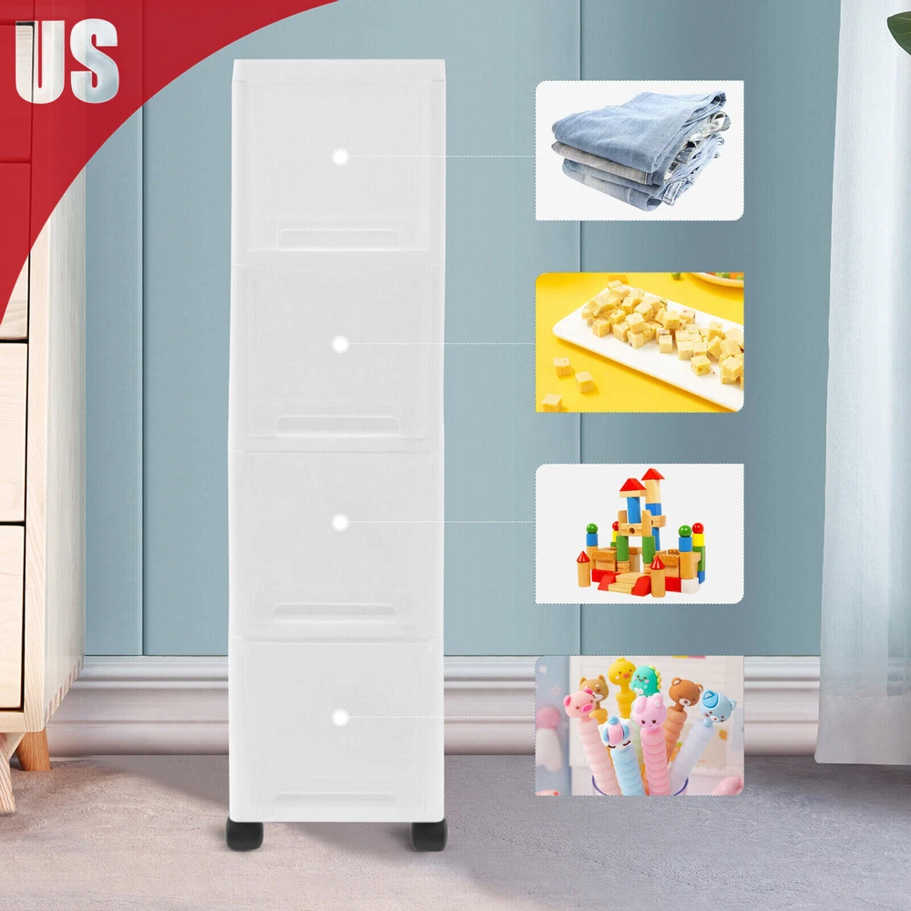 Description Are you still worried about having too little storage space at home? Our Japanese minimalist narrow slim rolling storage cart can solve your problem. This storage cart is slim enough to fit into narrow gaps in your home. It is made of high-quality PP material and is very sturdy and durable. In addition, it has a large capacity of 4 tiers to store a lot of things. Your home will be more tidy and beautiful with it. It is suitable for living room, kitchen, bedroom, bathroom, study room, etc. Key Features Slender Body: This storage cart is only as wide as two mobile phones. So it is narrow enough to be placed in your home's unused narrow gaps to create more storage space. Large Capacity: This storage cart has 4 drawers, providing you with lots of storage space for your da 4 Drawer Narrow Slim Mobile Storage Organizer Rolling Shelf Storage Cart w/Wheel Description Are you still worried about having too little storage space at home? Our Japanese minimalist narrow slim rolling storage cart can solve your problem. This storage cart is slim enough to fit into narrow gaps in your home. It is made of high-quality PP material and is very sturdy and durable. In addition, it has a large capacity of 4 tiers to store a lot of things. Your home will be more tidy and beautiful with it. It is suitable for living room, kitchen, bedroom, bathroom, study room, etc. Key Features Slender Body: This storage cart is only as wide as two mobile phones. So it is narrow enough to be placed in your home's unused narrow gaps to create more storage space. Large Capacity: This storage cart has 4 drawers, providing you with lots of storage space for your daily needs. In addition, the top shelf can also be used for storage. Good Load-bearing Capacity: This storage cart has a very good load-bearing capacity, with each drawer holding approximately 22lbs of weight. So even if you put heavy objects in it, it will not deform or damage. Great Durability: This storage cart is made of sturdy and impact-resistant PP material. So it will be very durable and uneasy to damage. Dustproof Drawers: The drawers of this storage cart are all closable, so it is difficult for dust to enter. The dustproof design keeps the items inside clean. Sorted Storage: The four drawers of this storage cart can be used to sort and store different items according to your preferences. This makes it easier for you to find the stuff. Your room will be tidier, too. Universal Wheels Design: The storage cart has four wheels that can be rolled at 360°. So you can easily move it. Besides, the 4 wheels make very little noise when they are rolling. Transparent and Visible: The doors of each drawer are transparent and visible. So you can see exactly what's inside and find what you want quickly. Stylish and Simple Appearance: This storage cart is made in a minimalist Japanese style. The white cuboid appearance looks both simple and stylish. Putting it in your home will make the room look even more beautiful. One-piece Design: This storage cart is shaped in one piece, so you can use it directly without installation. Easy to Clean: This storage cart is very easy and convenient to clean. You can use a wet towel to wipe away dust and dirt from the surface and inside of the drawers. Guaranteed Customer Service: We aim to provide quality products and services. If you have any problems, please feel free to contact us. We will reply and solve the problem for you as soon as possible. Details Fluted Handles: To facilitate you to open the drawers, we have designed fluted handles on each drawer. Drawer Anti-slip Clips: Each drawer is designed with anti-sli p clips to prevent the drawer from slipping out of the cabinet. So even if you pull hard on the drawers, they won't slide down and hit you. Rounded Edges: The edges of the cabinet have been designed with rounded edges rather than sharp right edges to avoid bruising. Storage Platform: The top part of the cart has a recessed platform for storing small items such as cosmetics, toothpaste, toothbrushes, cups, etc. Application This storage cart can hold clothes, toys, stationery, snacks, and so on. It is suitable for living room, kitchen, bedroom, bathroom, study room, etc. Specification Color: White Material: PP Load Capacity Per Drawer: 10kg/22lbs Gross Weight: 5kg/11lbs Product Size: 18*45*82.5cm/7.1*17.7*32.5inch Package Size: 80.2*48.6*19.5cm/31.57*19.13*7.68inch Package Included 1* Narrow Slim Rolling Storage Cart Notes Please allow the slight color difference caused by the shooting light and 1-3 cm error due to manual measurement, and make sure you do not mind before ordering. Payment Delivery details Terms of sales About us Contact us Payment We accept ebay payment 。 Fees such as import duties, taxes are not included in the item price or shipping costs. These charges are the buyer's responsibility. Delivery details Shipping: 2-9 working days to: USA Terms of sales We maintain high standards of excellence and strive for hundred percent customer satisfaction. Feedback is very important to us. We hope that you contact us immediately before you give neutral or negative feedback, so that we can address your concerns. It is impossible to address issues if we do not know about them! About us Your satis faction is our ultimate goal. We work hard to earn your trust and future business. Our certified technicians have tested each item before shipping. The unit comes with 1 year limited warranty on all manufacturing defects. a) If you receive a defective item, you may return it or ask for a discount. Please contact us within 14 days after you receive the package. b) What you returned must be intact and in its original packaging as re? u. Customer is responsible for shipping costs of the returned item. c) We will cover the cost of shipping back t with the shipping rate indicated in the registration page. We will send you a new unit or refund the full payment you paid. Thank you. Contact us Business Hour Business Hour: Monda