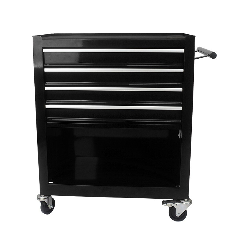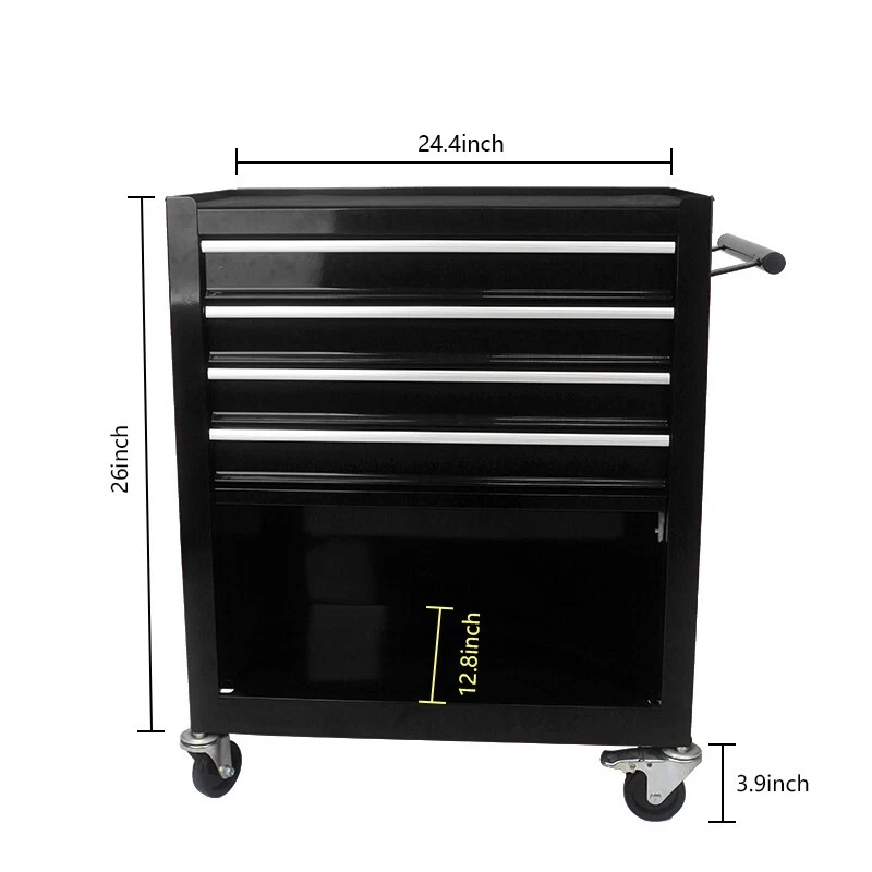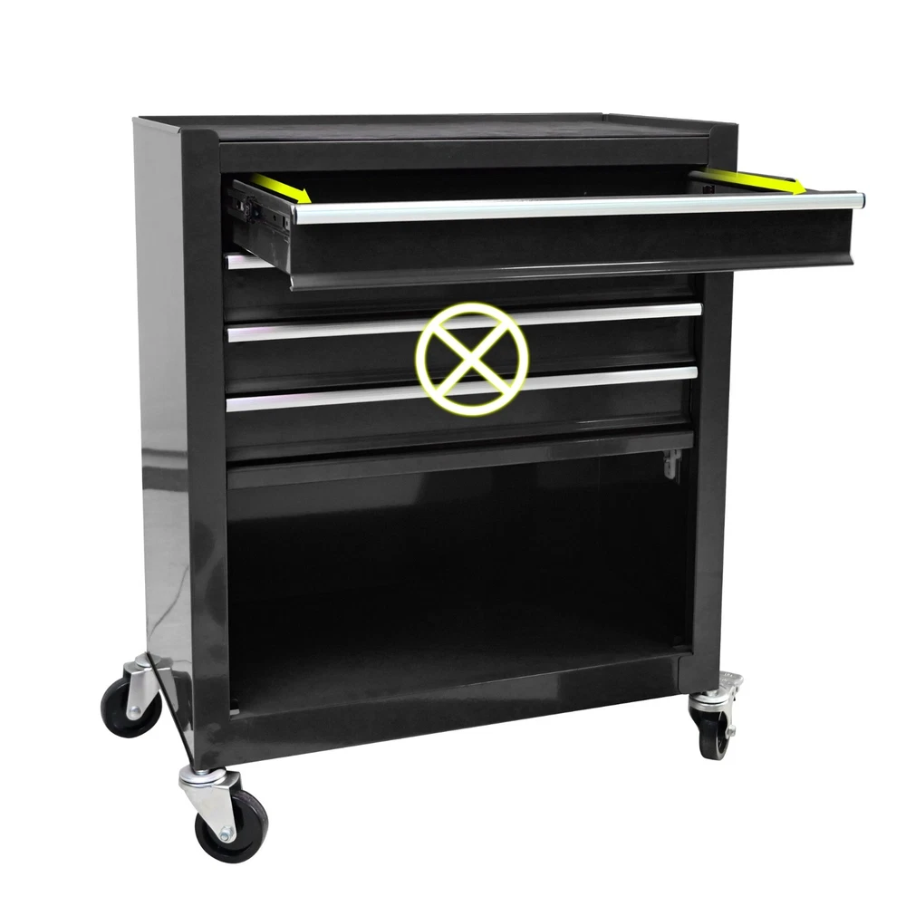 About this item: The mobile workshop trolley impresses with 4 drawers tool set The ARTMAN tool trolley is equipped with a total of 4 drawers and a large storage space on bottom. The tool trolley have interlock safe system(each time can only open one drawer.)The tool box is also lockable and can be used as a removable, attachable and mobile case attachment The opening and closing of the drawers of the tool cabinet is very gentle thanks to the ball-bearing drawers. The robust and powder-coated steel construction is used for high wear resistance. This assembly trolley has 4 steering wheels, 2 of which with parking brakes, so you can move the trolley freely in the garage, but also stop in one place Specification: Color:Red / Black / Blue Material: Cold Rolled Steel Surface Finish: Powder Coating Bottom Dimension: L616mm(24.25inch)*W330mm(13inch)*H745mm(29.33inch) Drawers Dimension: L511mm(20.11inch)*W304mm(12inch)*H85mm(3.34inch) Bottom space Dimension: L610mm(24inch)*W330mm(13inch)*H360mm(14.17inch) Weight (lbs): 41.90 Package Content: 1× 4 drawers Workshop tool tool 1× Manual