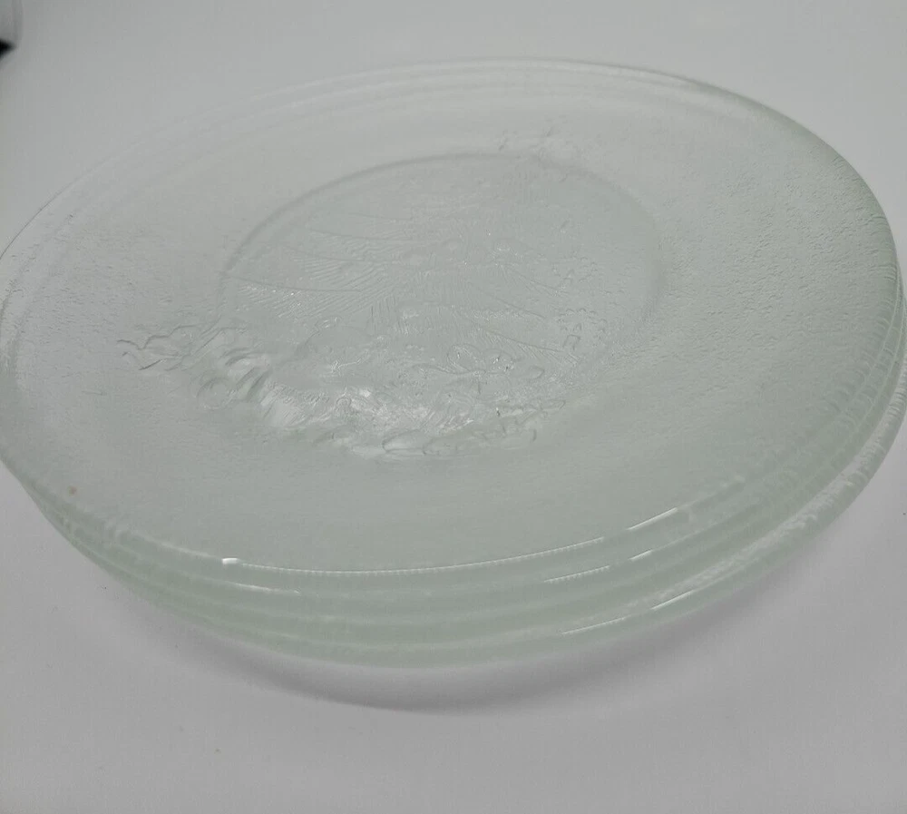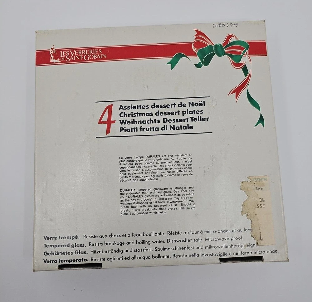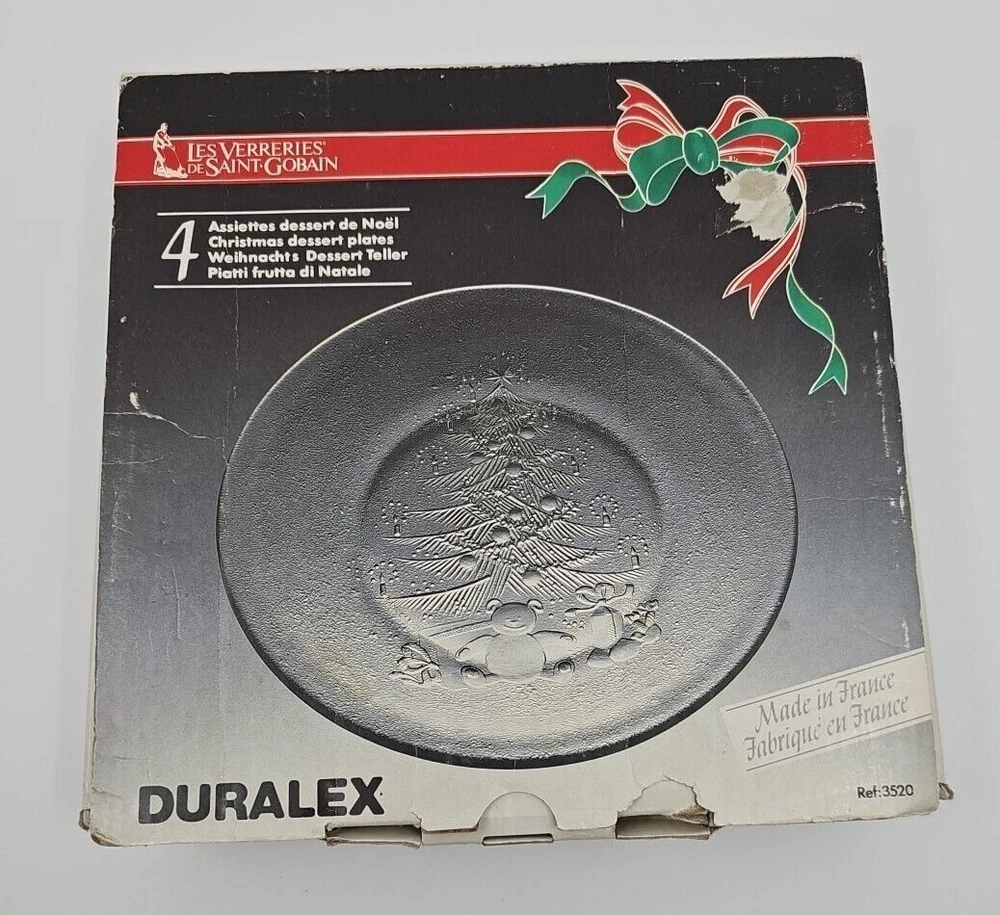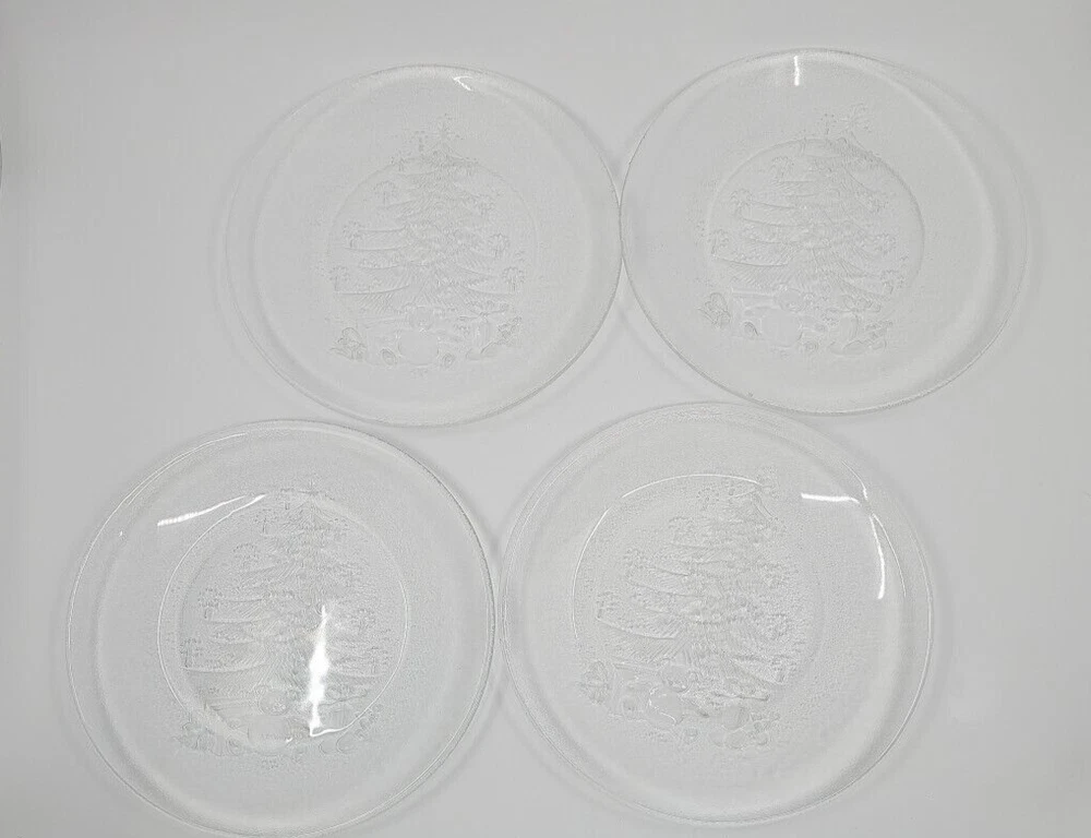 4 Duralax Tempered Glass 8" Salad Plates Christmas Tree Embossed Made In France