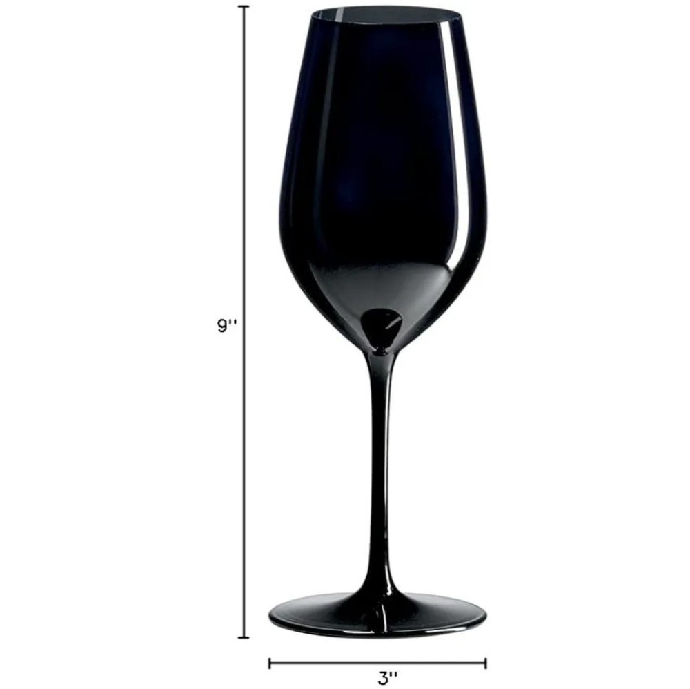 Enhance your wine-drinking experience with these four European-made double blind black wine glasses. Crafted from 100% lead-free crystal, these glasses have a 16 oz capacity and are perfect for any occasion. The black color adds a touch of elegance and sophistication to your table setting, while the unique double blind design adds an element of intrigue and fun. These wine glasses are perfect for any wine lover or collector, and are sure to impress your guests. Made with high-quality crystal, these glasses are durable and long-lasting, ensuring that you can enjoy your favorite wines for years to come. Don't miss out on this luxurious addition to your glassware collection!