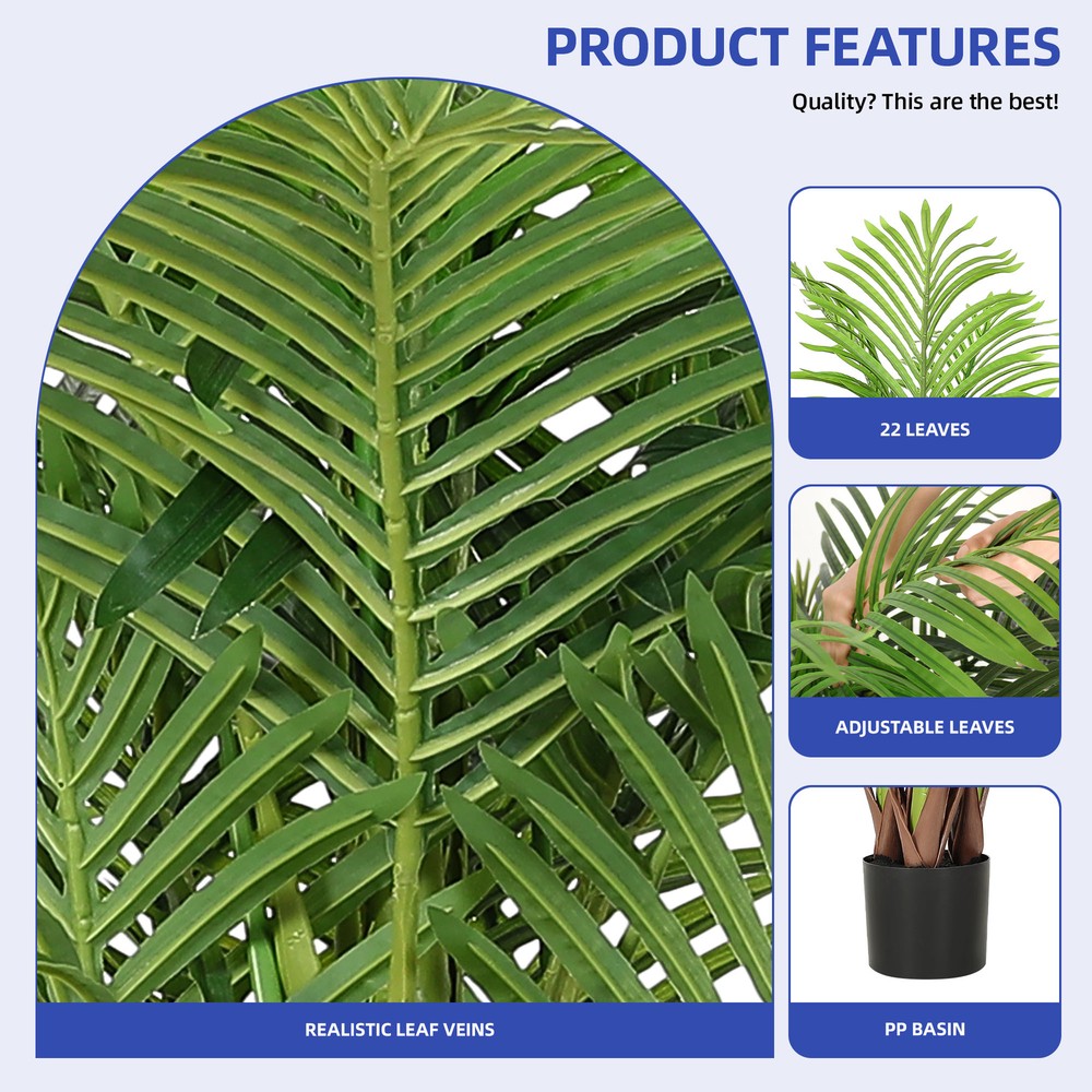 This artificial Areca palm looks incredibly lifelike with its 22 lush green leaves—no one can tell it’s fake! The sturdy cement base keeps it stable, and the high-quality materials ensure it won’t fade. Perfect for adding a tropical vibe to any room or patio without the hassle of watering. A great low-maintenance upgrade to my space!