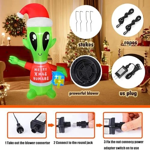 30 Days Return Policy Fast Delivery Trusted seller 4 FT Christmas Inflatables Alien with Gift Box Decorations LED Lighted Xmas Christmas Blow up Yard Decorations for Party Indoor Outdoor Garden Decor Product Description CHRISTMAS INFLATABLE: 4 FT Christmas Inflatable Alien with Gift Box is ideal Christmas blow-up yard decorations. The Christmas Inflatables will light up your yard and welcome your lovely neighbors BUILD-IN LED LIGHT: Christmas inflatables equipped with LED light, large and bright enough to illuminate the cheerful atmosp of Christmas Night! Easy to spot! This 4 FT Christmas Inflatable Alien with Gift Box would be an ideal host to welcome your Xmas guests STABLE DESIGN: The christmas blow up decorations are designed to be stable and inflatable during the holiday. The inflatable comes with ropes and stakes to ensure the stability of the inflatables. EASY SET-UP AND USE: Just plug this christmas inflatables decorations in, it has a built-in fan and in only seconds it will be fully inflated, then secure it to the ground AFTER SERVICE: If you're unsatisfied or have any problems with Xmas Blow Up Yard Decoration please contact the seller through . Shipping Returns Payment Shipping Shipping is FREE to all addresses other than APO/PO boxes in the lower 48 states. All our stock ships from US-based warehouses. Shipped via USPS or UPS (depending on location and package weight) Unless stated otherwise, all orders will ship within 24-72 hours of your payment being processed. Check our feedback to see the great reviews of FAST shipping we offer. Returns As our valued customer, we will do our best to make sure the product you receive arrives to you on time and as expected. If you are not satisfied with your purchase, please contact us within 30 days of receiving your order to process a return. Payment We currently accept payment via eBay managed payments only. Once payment is cleared, we will dispatch your shipment within 1-3 business days. Please refer to the "Shipping" tab for more information regarding shipping speed to your destination.